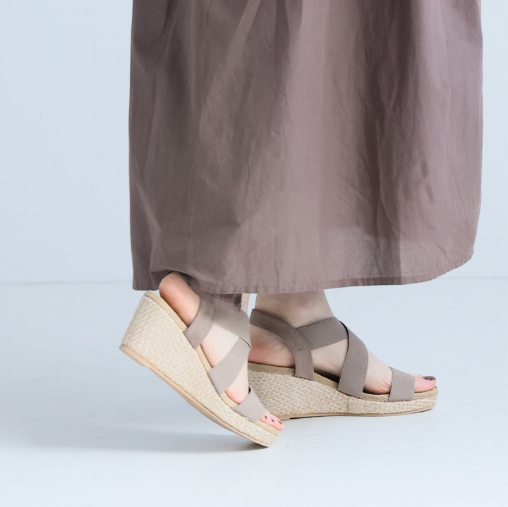 柔らかウェッジソール&ジュート柄ふかふかクッション7cmゴムフィットサンダル