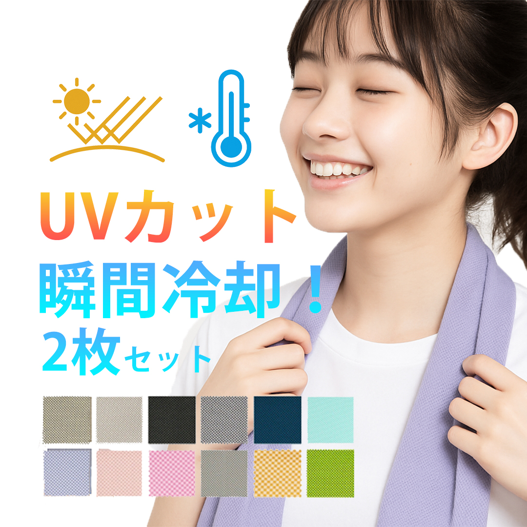 クールタオル2枚セットは、夏の暑さ対策に最適なアイテムです。このタオルは、水に浸して絞り、振るだけで冷たさを感じることができる接触冷感機能を持っています。使用後は乾かして再度水に浸せば、繰り返し使えるため、非常に経済的です。また、UVカット機能も備えており、屋外での使用にも適しています。