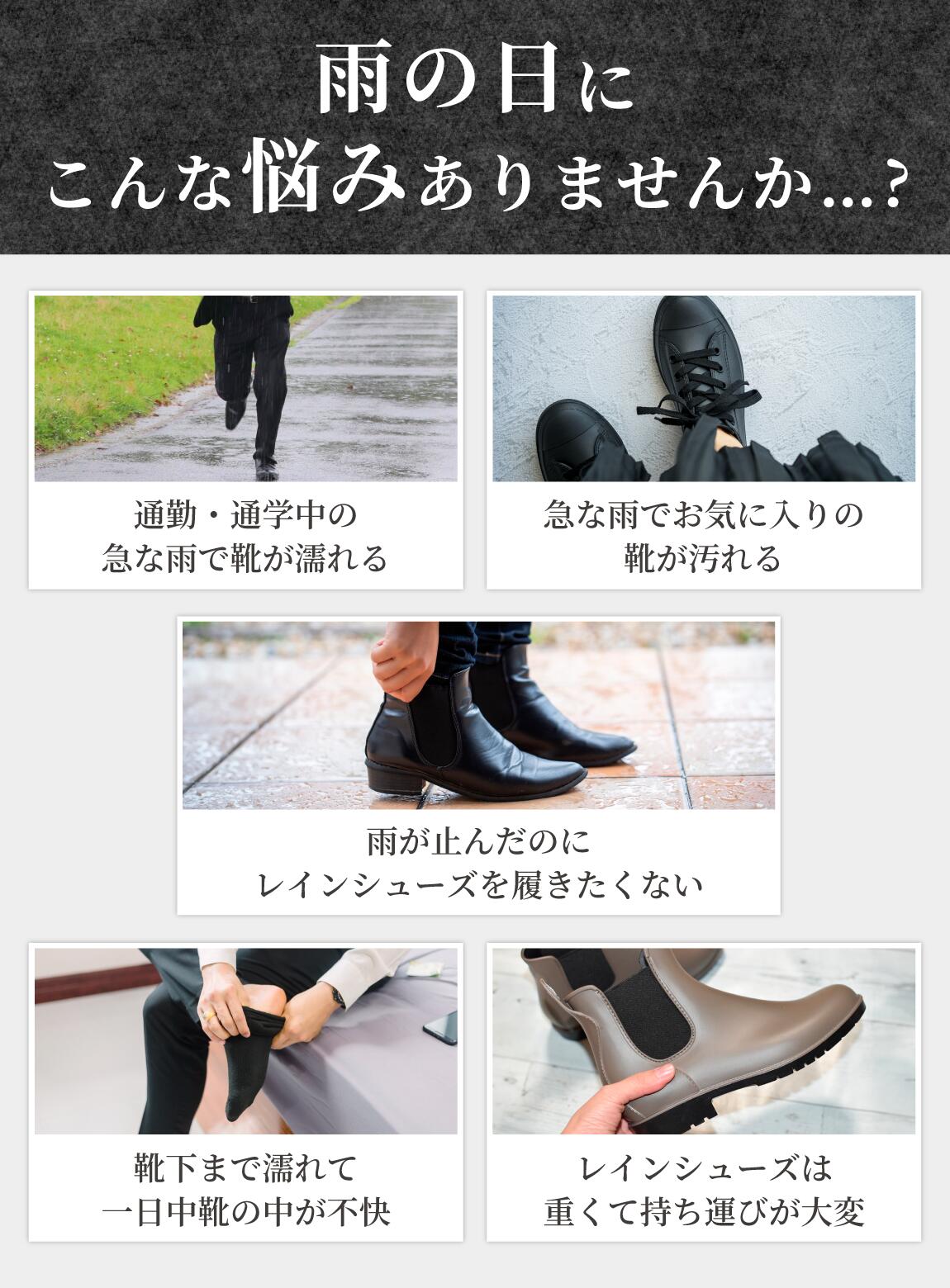 靴の上から履くだけで、簡単に足もとの雨濡れ対策ができるシューズカバー