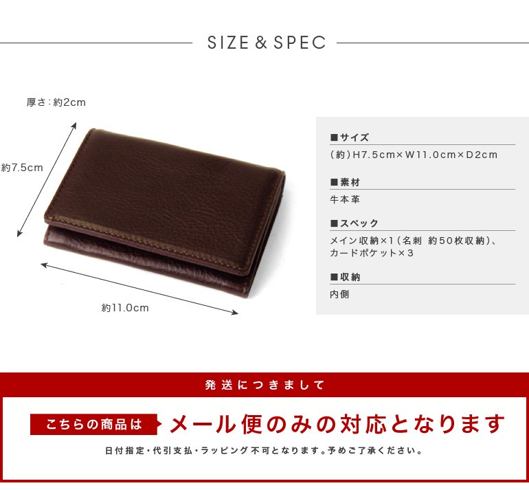 Spec:名刺50枚収納可、カードポケット×3