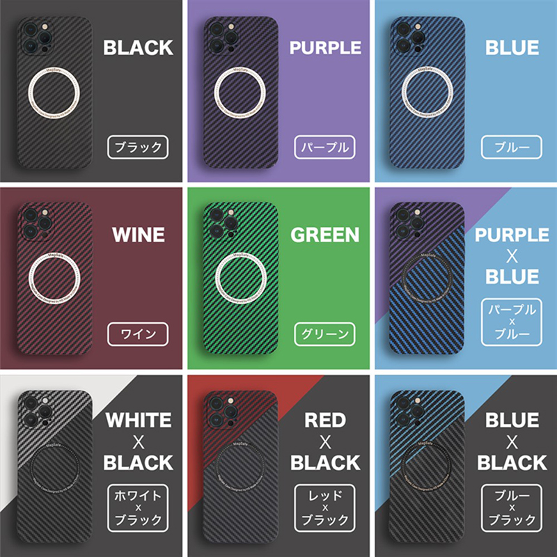 ブラック、パープル、ブルー、ワイン、グリーン、パープルxブルー、ホワイトxブラック、レッドxブラック、ブルーxブラック