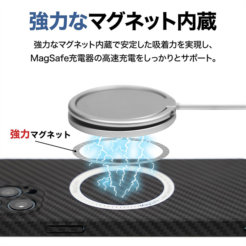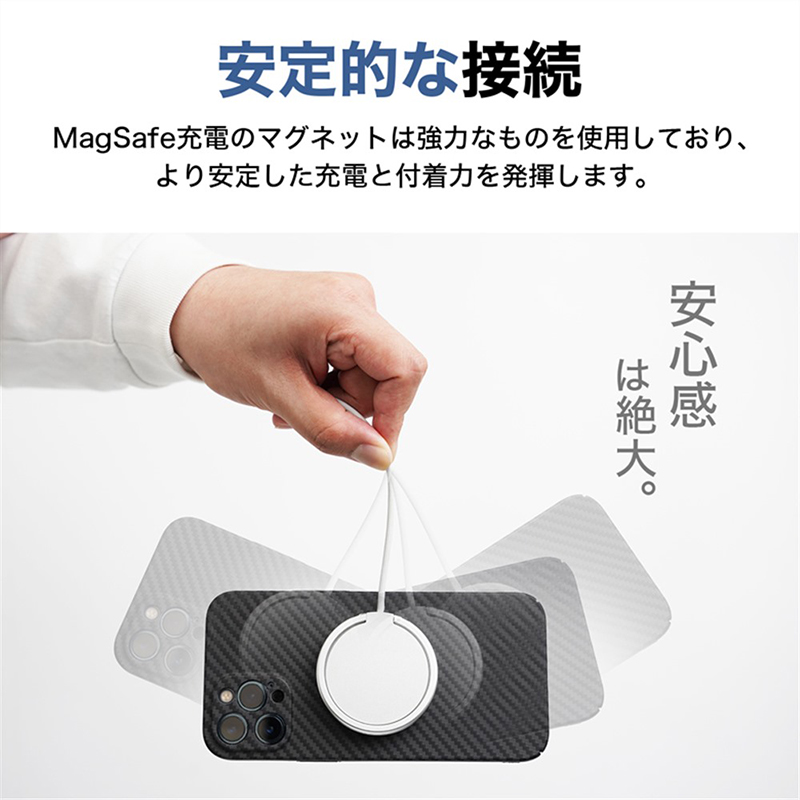 さらに装着感がゼロとも言えるほど、ケースの厚みを薄くすることができました もちろんMagsafe以外のワイヤレス充電器にも対応しております!