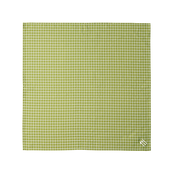 格子状のチェックの生地に、さりげないカトラリー刺繍がポイント。