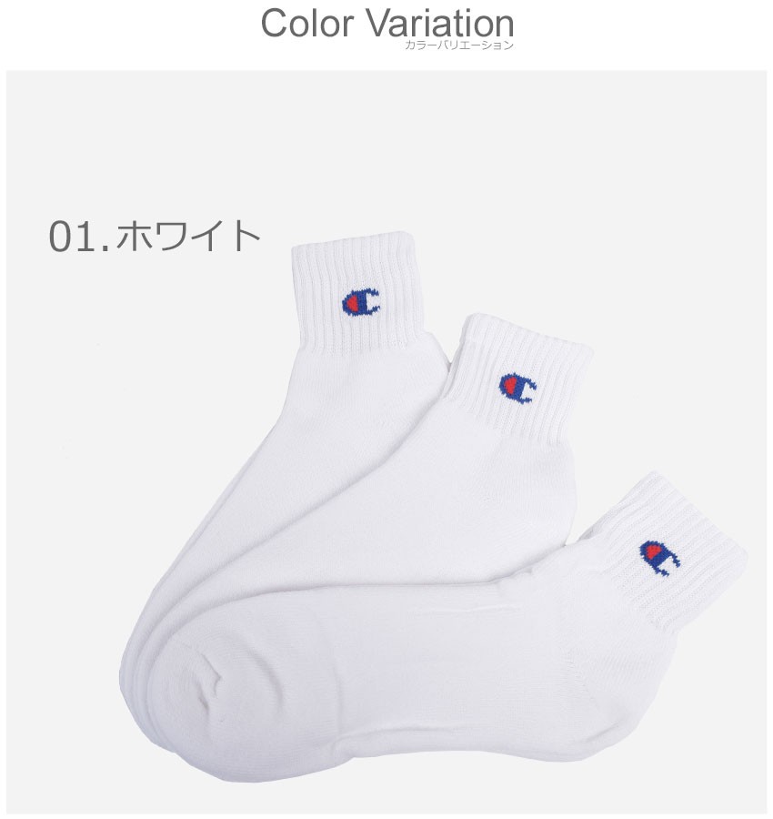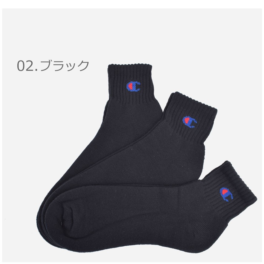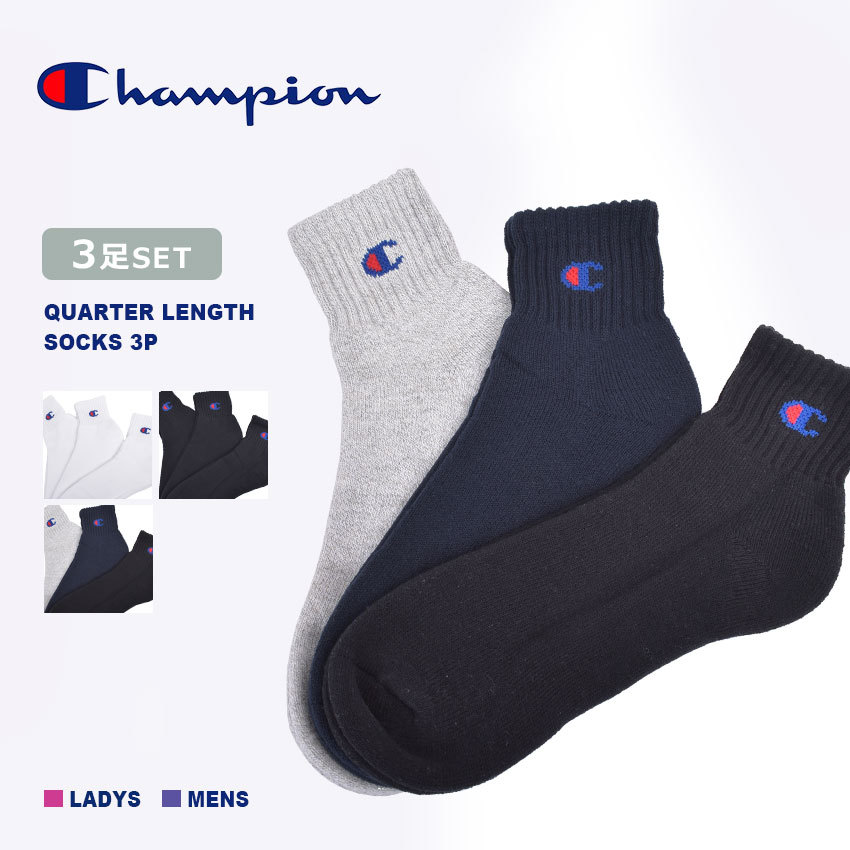 チャンピオン 靴下 メンズ レディース 3足組 クォーターレングスソックス CHAMPION CMSCH201 ホワイト 白 ブラック 黒 ウエア
