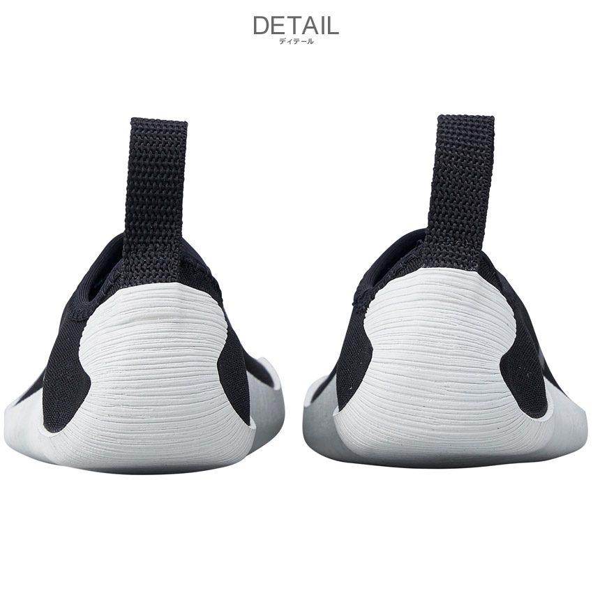 全てのマリン・ウォーターアクティビティに最適なネオプレン素材のマリンシューズ。軽量で足を包み込む抜群のフィット感なのでビーチサンダルよりも快適で、熱くなった砂浜、サンゴや貝殻から足を守ります。履いたまま海の中で歩いたり浮いたり泳いだり出来るのもマリンシューズならではの特徴。ビーチ周りはもちろん、SUPや釣り、そしてBBQなどのアウトドアシーンにも使えて用途は趣味の数だけ。1足持っておくと非常に便利なアイテムです。