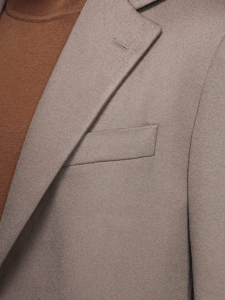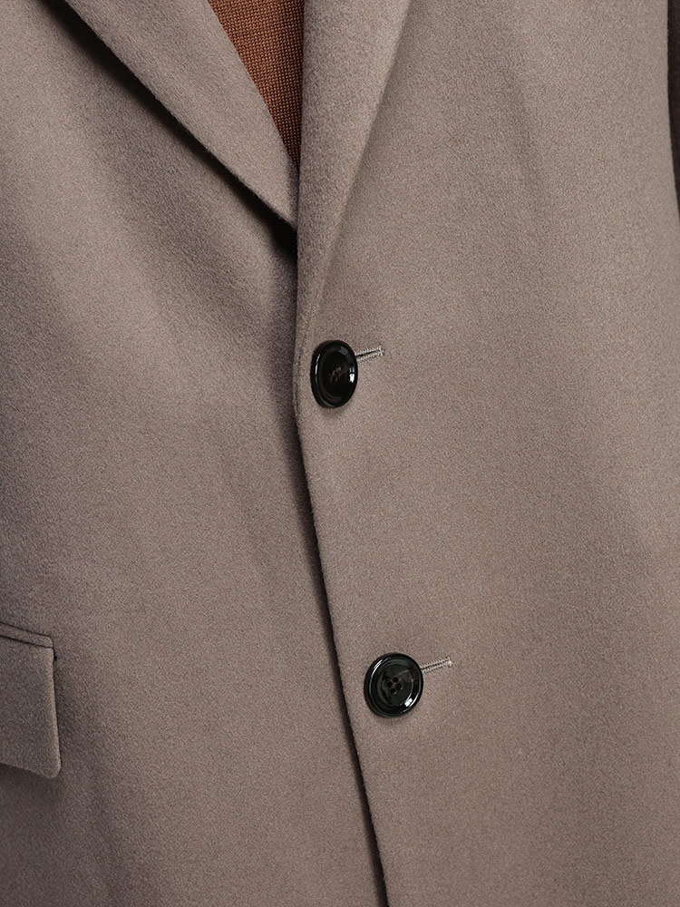 イタリアの老舗ブランドラルディーニが誇る、カシミヤ100%の極上素材を用いたシングルチェスターコート。繊維の宝石とも称されるカシミヤならではの、とろけるような肌触りと、エレガントな光沢が、最高の着心地と格調高い佇まいを約束します。熟練のテーラー技術によって生み出された美しいシルエットは、ビジネスからフォーマルまで、大人の男性の装いを圧倒的な品格で包み込みます。裏地には滑りの良い素材を採用し、袖通しまで完璧に計算。秋冬のワードローブにおいて、本物のラグジュアリーを体現する、至高の一着です。