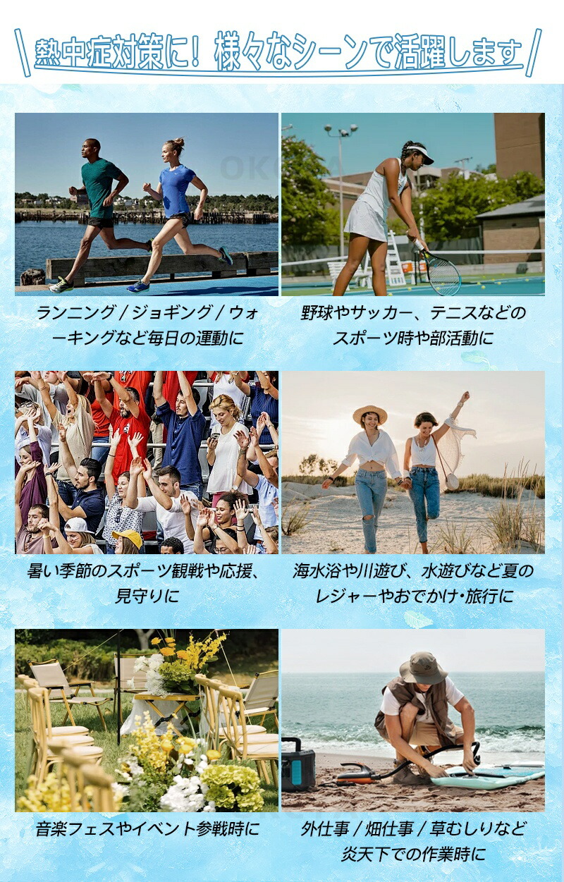 【使用シーン】スポーツ観戦 キャンプ アウトドア 工事現場 農作業 音楽 野外 フェス 運動会 イベント 大会 部活 試合 スポーツ 野球 ゴルフ 屋外 公園 ランニング 熱中症対策 熱中症 熱中症予防 少年野球 観戦 応援 インターバル アイシング トレーニング クールダウン ネックウォーマー エコ 節電