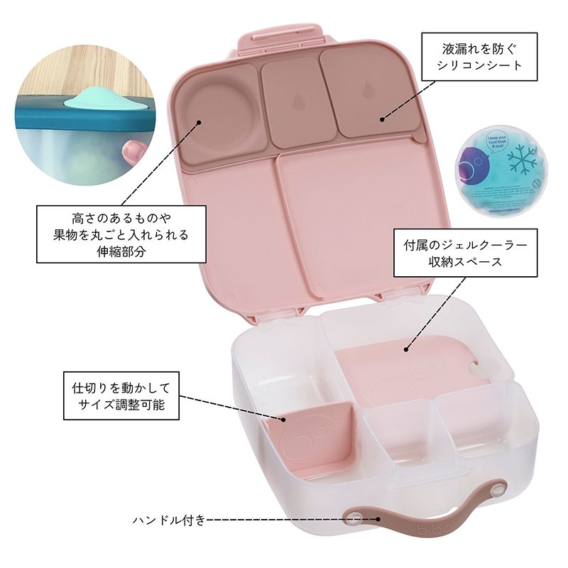 b.box ビーボックス ランチボックス Lunchbox お弁当箱 2L 保冷剤 ジェルクーラー 仕切り調整 フルーツフォルダー 密閉 漏れにくい 持ち手付き 幼児 3歳 遠足 保育園 幼稚園 保存容器