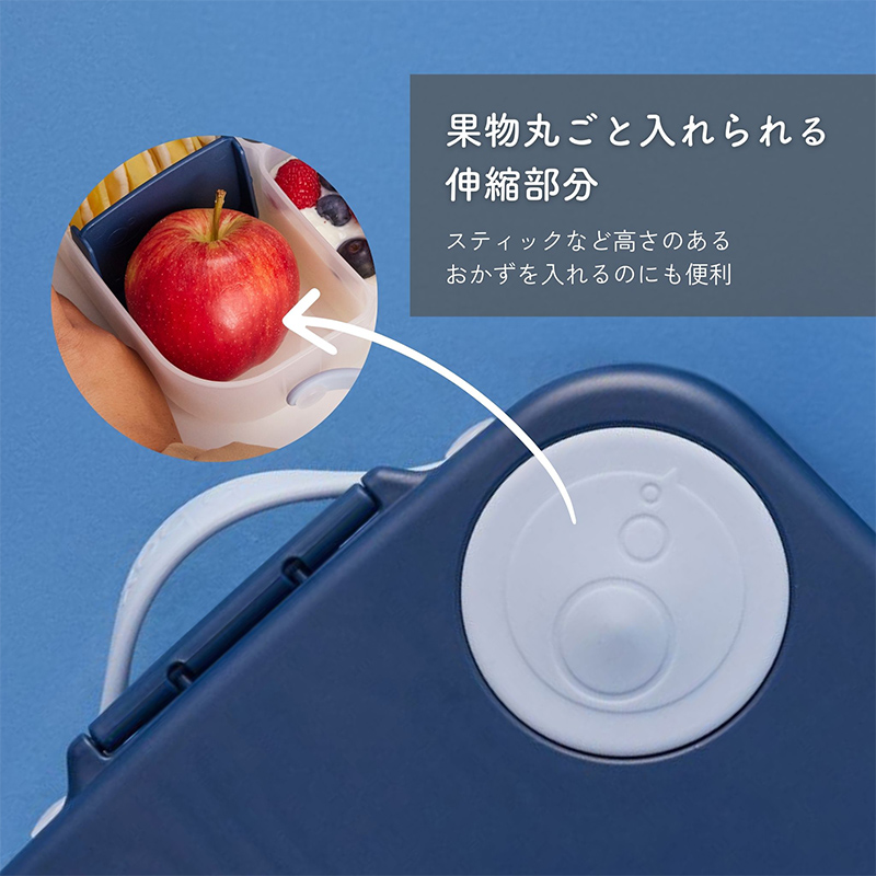フルーツや高さのある食材を入れやすい伸縮部分付き。