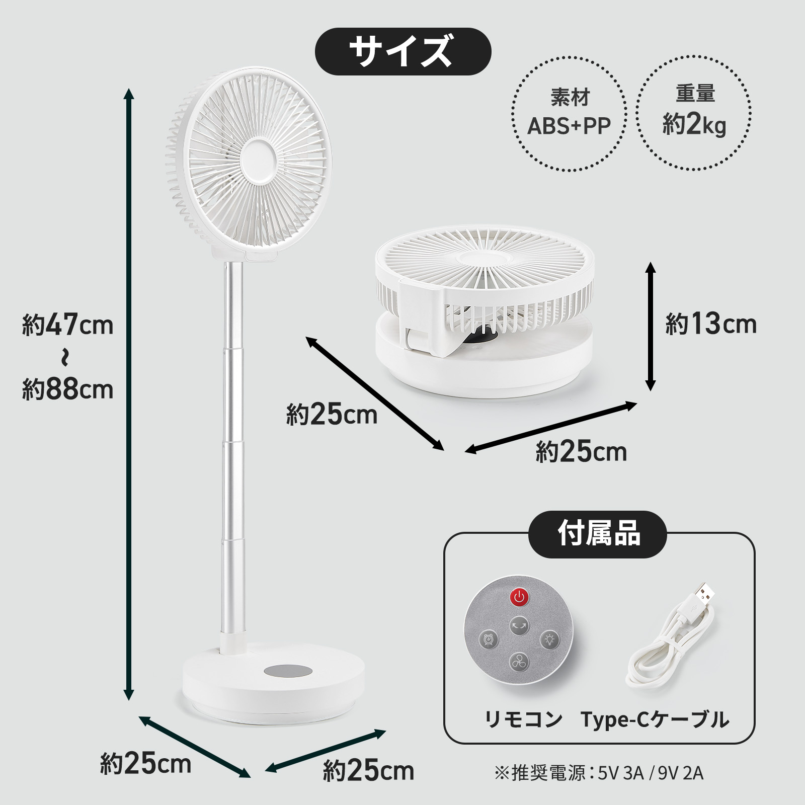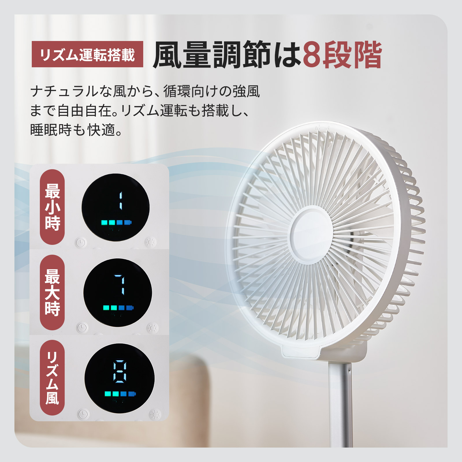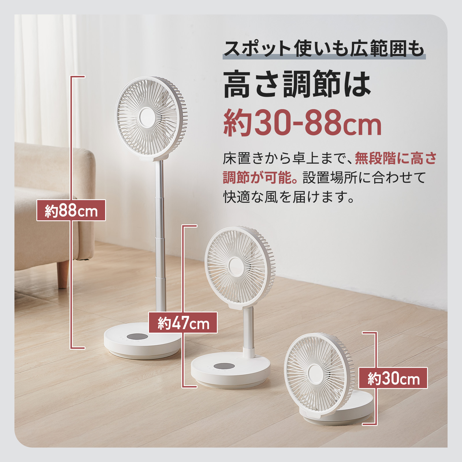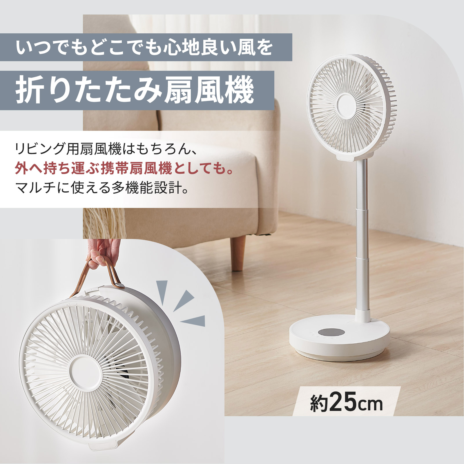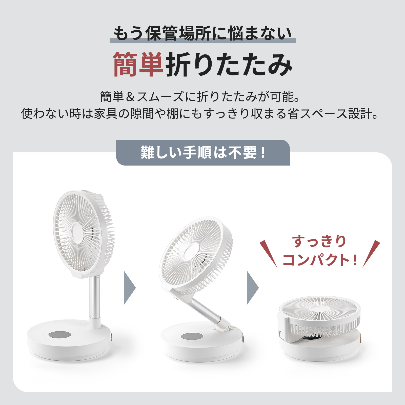 扇風機 折りたたみ 充電式 dcモーター リビング 小型 首振り おしゃれ アウトドア バッテリー ONE STEP