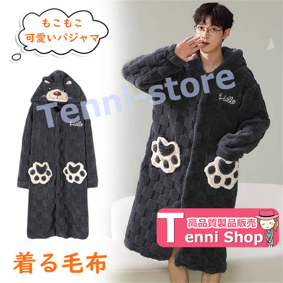 着る毛布 着ぐるみ パジャマ メンズ モコモコ ルームウェア 可愛い 冬用 クマ耳 ルームウェア 男性 パジャマ 大人用 着る毛布 動物 春秋 ナイト