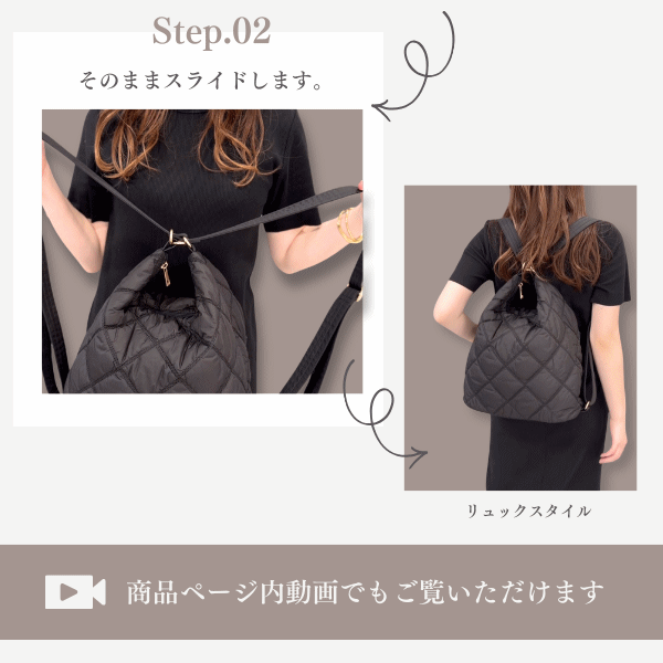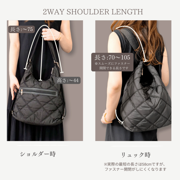 【動画あり】ナイロン ショルダーバッグ リュック 2way 軽量 レディース キルティングナイロン 大人 ナイロンリュック 斜め掛け