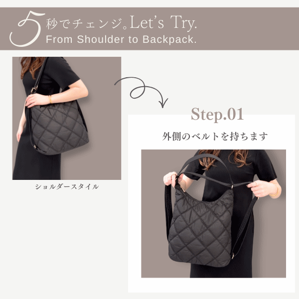 リュックとしてショルダーとしてワンタッチでチェンジ