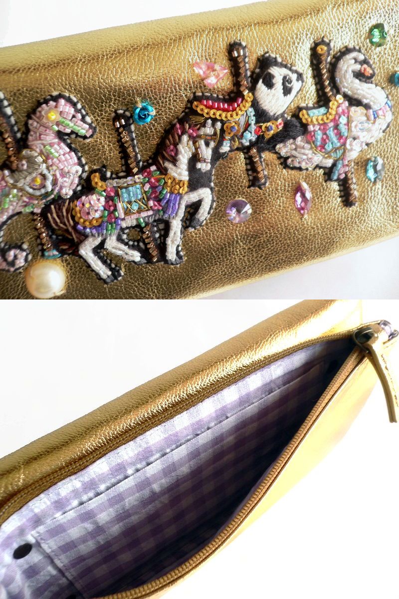 ノベルティ tamao world タマオワールド 刺繍 ビーズ 長財布 ロング財布 WAL3790 猫 ネコ ねこ WAL3839 メリーゴーランド パンダ 白馬 白鳥 宝石 ビジュー