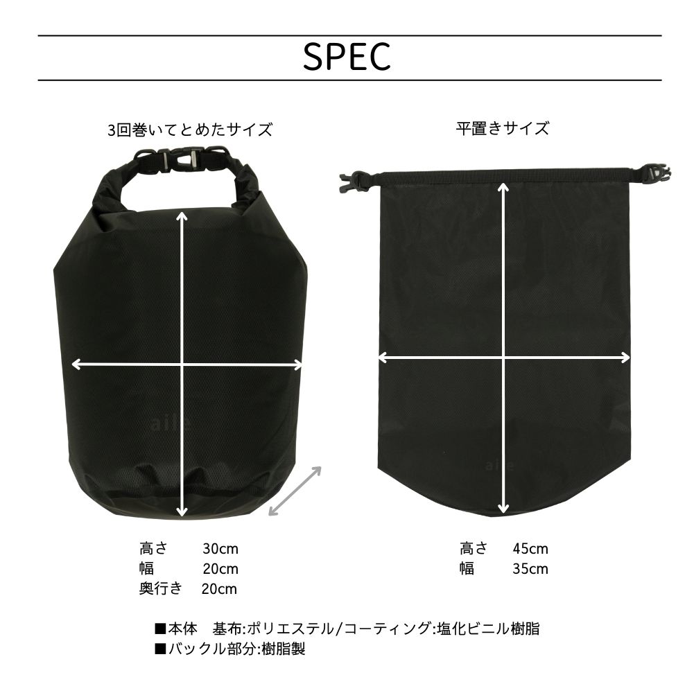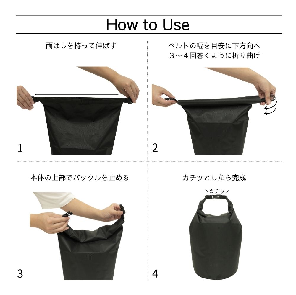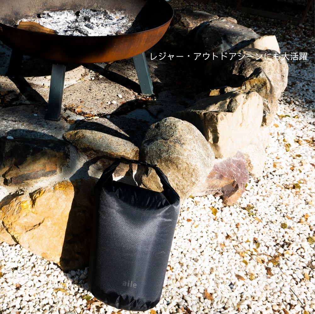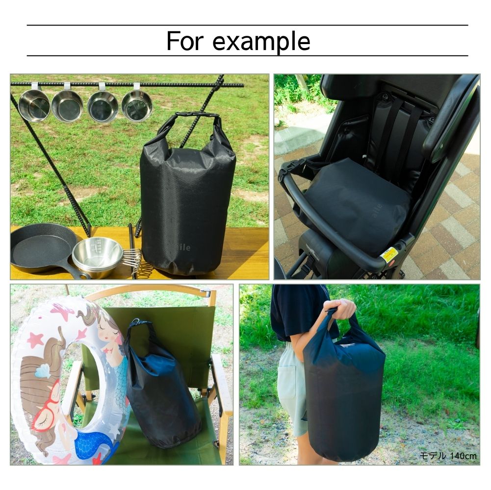 スポーツジムでの水着を入れたり、ランチバッグ、災害時の給水バッグ、海や川では浮き具など、さまざまなシーンで活躍します。