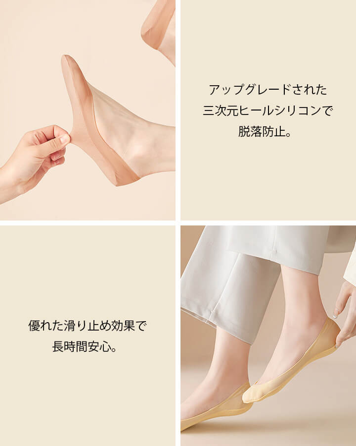 ■アップグレードされた三次元ヒールシリコンで脱落防止。