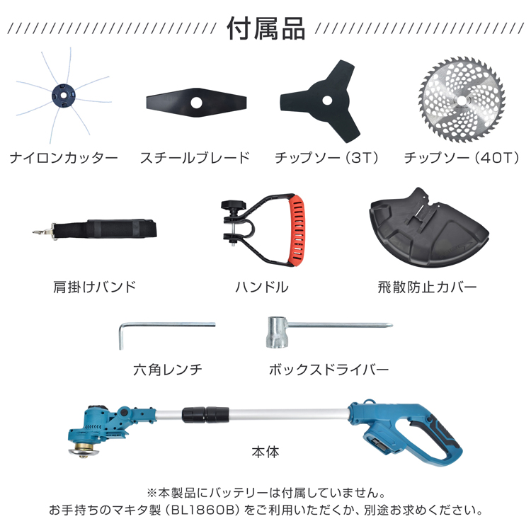 ・適応バッテリー:マキタ製(BL1860B)※別売り