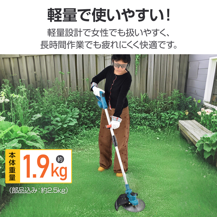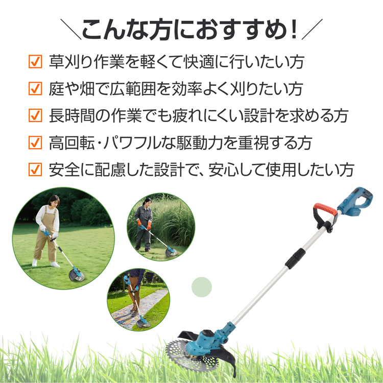 電動草刈り機 草刈 2026 バッテリー草刈機 庭 肩掛け 家庭用 草刈機女性 コードレス草刈り機 ナイロン 電動草刈り コードレス電動草むしり機 バッテリー式草刈り機 女性 電気式 ブラシレスモータ 電動草取り機 肩掛け紐付き 家庭菜園 狭い場所 斜面 おすすめ 安い 高性能 マキタ BL1860B 伸縮 畑 空き地 ロック 角度調整 飛散防止 公園 あぜ道 道路脇 休耕田 ガーデニング 刃 チップソー ナイロンカッター スチールブレード ナイロンコード 肩掛けベルト 敬老の日 父の日 母の日 クリスマス プレゼント ギフト