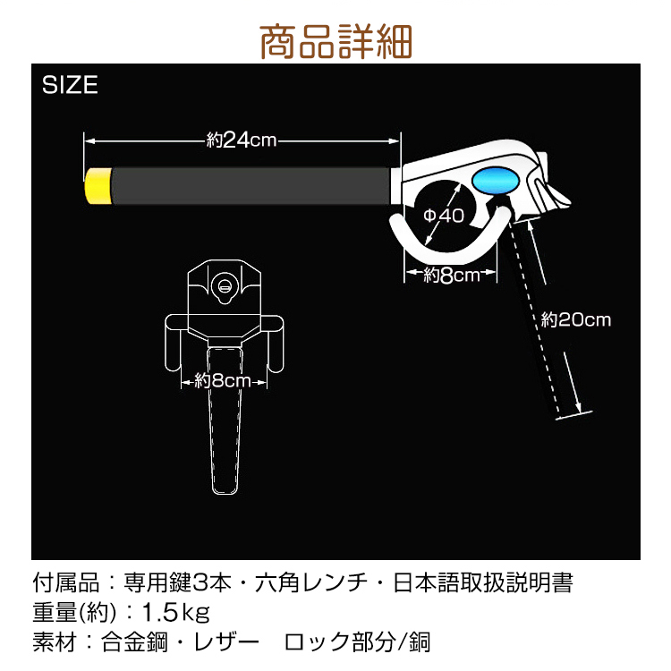 ・商品内容:ハンドルロック・専用鍵3本・六角レンチ