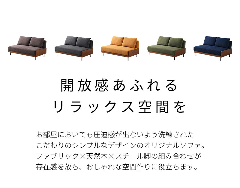 デザイン アームレス スチール脚ソファ ウィダー