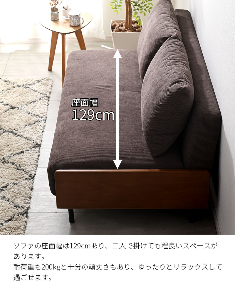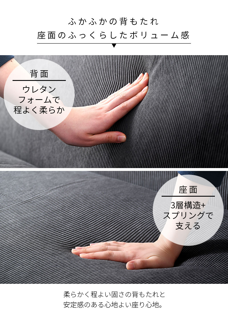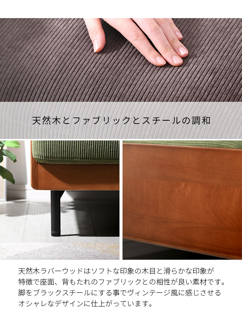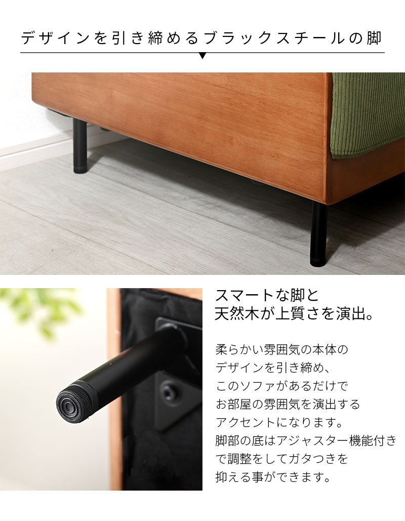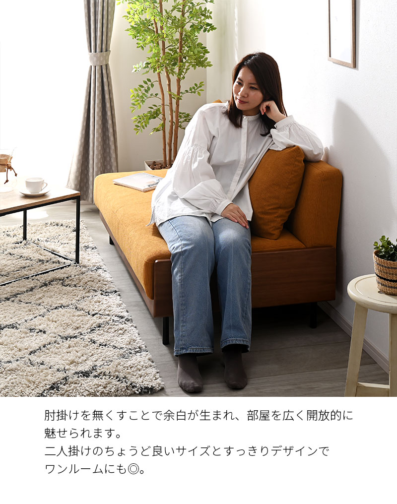 二人掛けのちょうど良いサイズとすっきりデザインでワンルームにも◎。