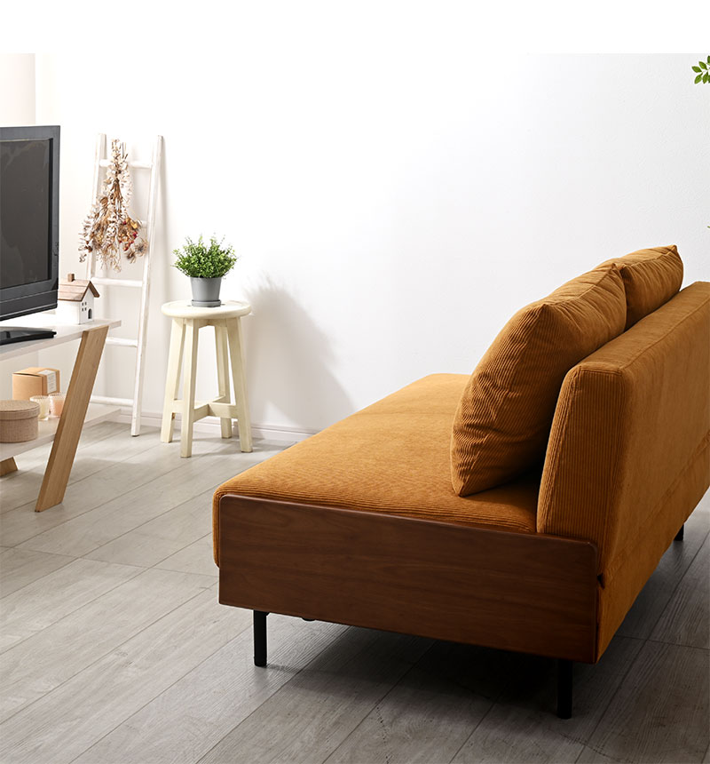 肘掛けを無くすことで余白が生まれ、部屋を広く開放的に魅せられます。