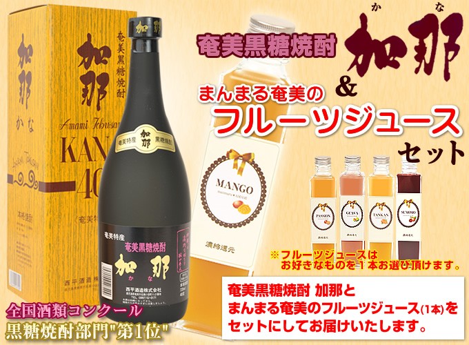奄美 黒糖焼酎 加那 40度720ml フルーツジュース まんまる奄美 マンゴー パッション グアバ すもも たんかん 2本セット 九州 奄美大島