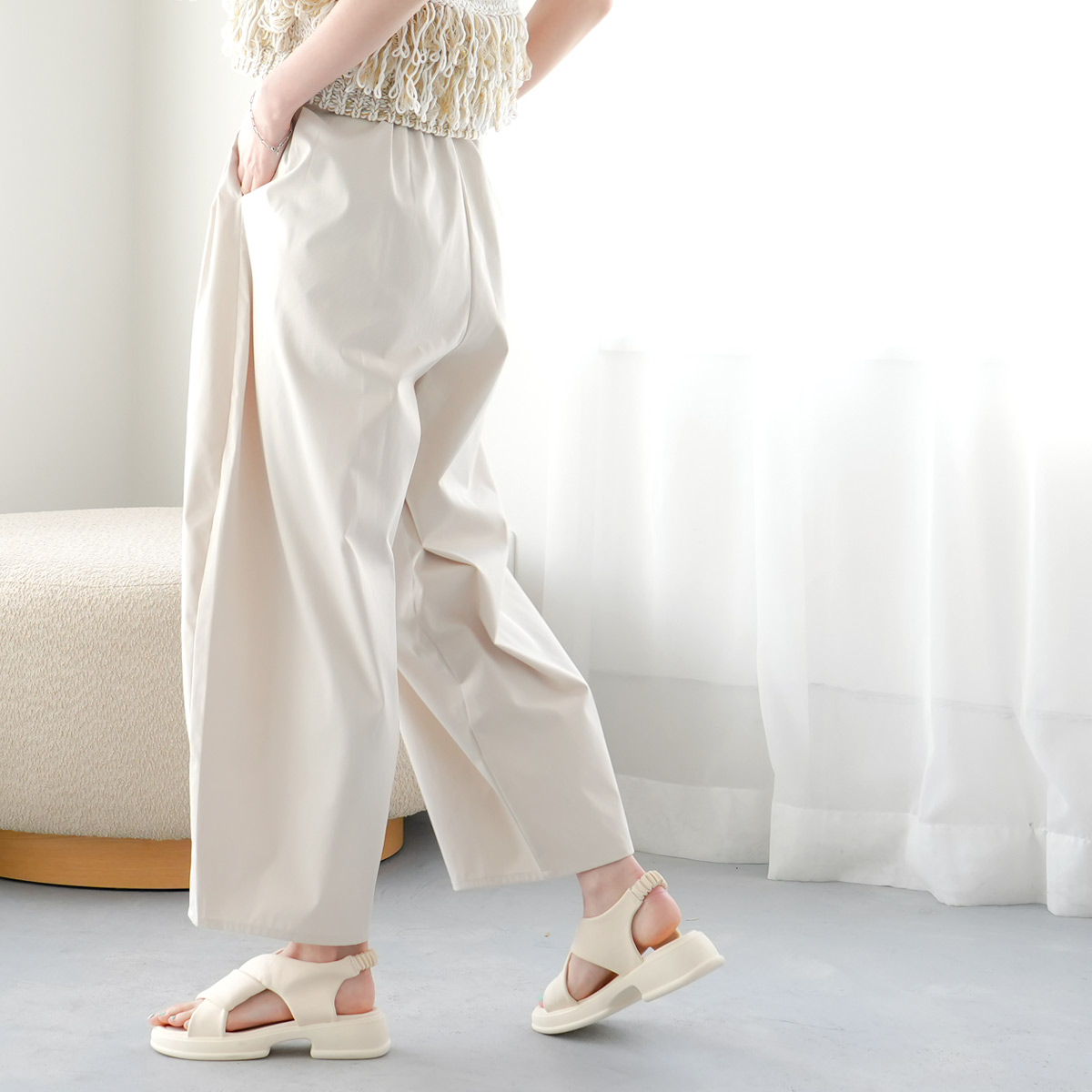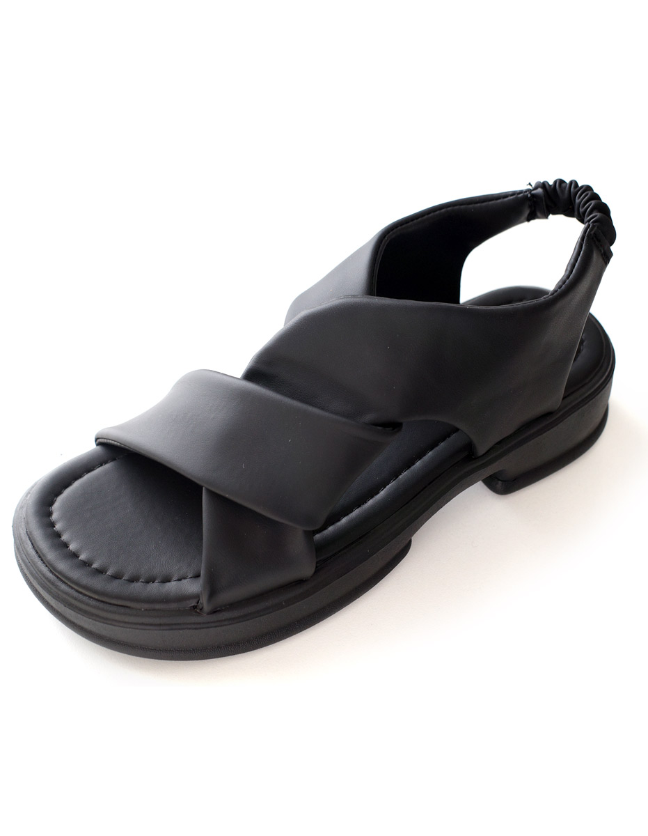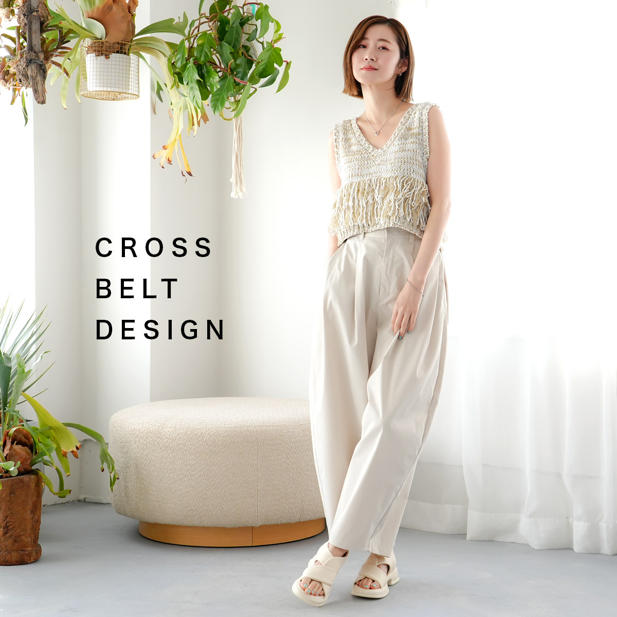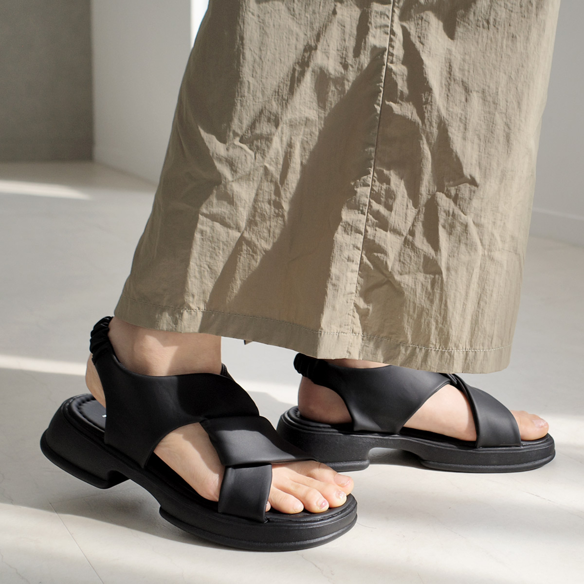 甲を覆うクロスベルトとバックストラップでホールド感抜群!ふんわりやわらかな素材で足当たり良く、包みこまれるような安心感のある履き心地です。