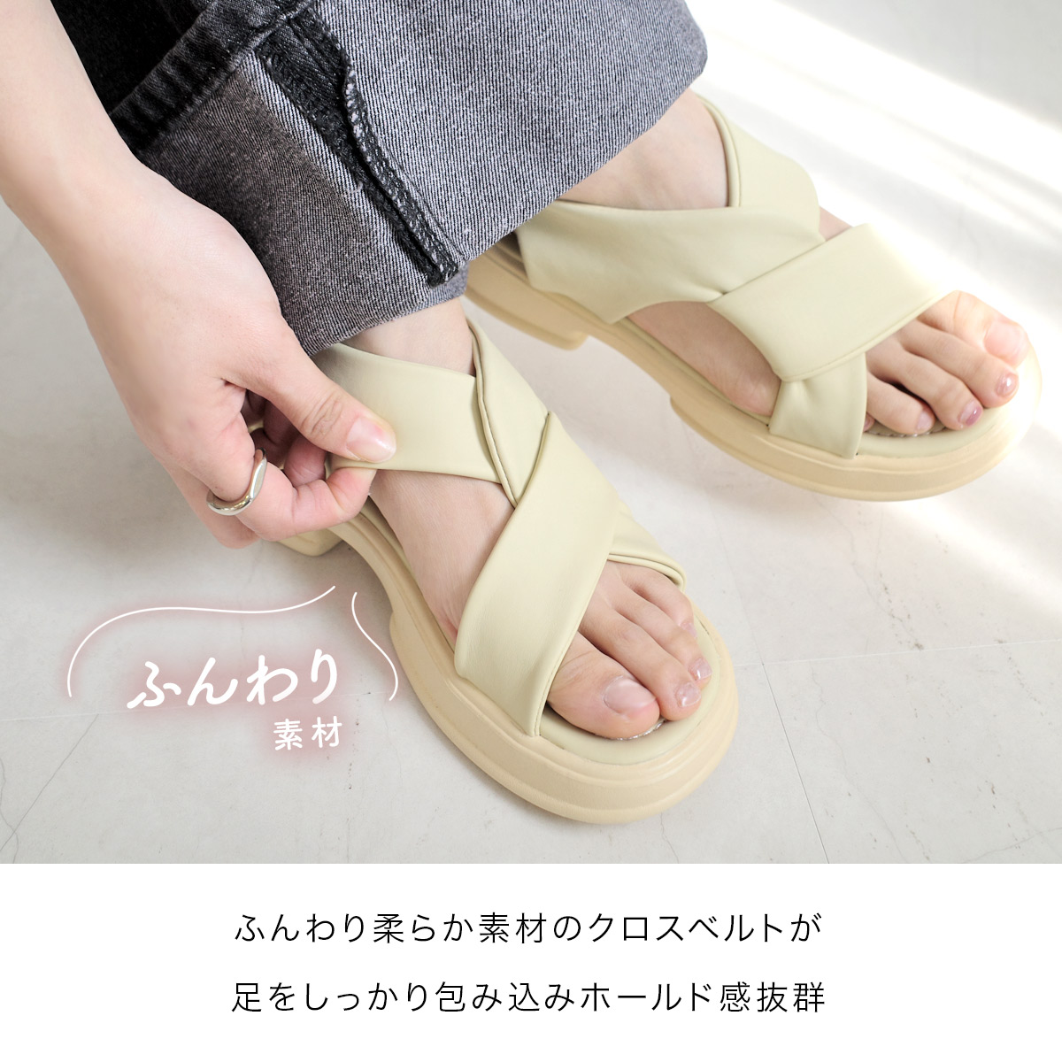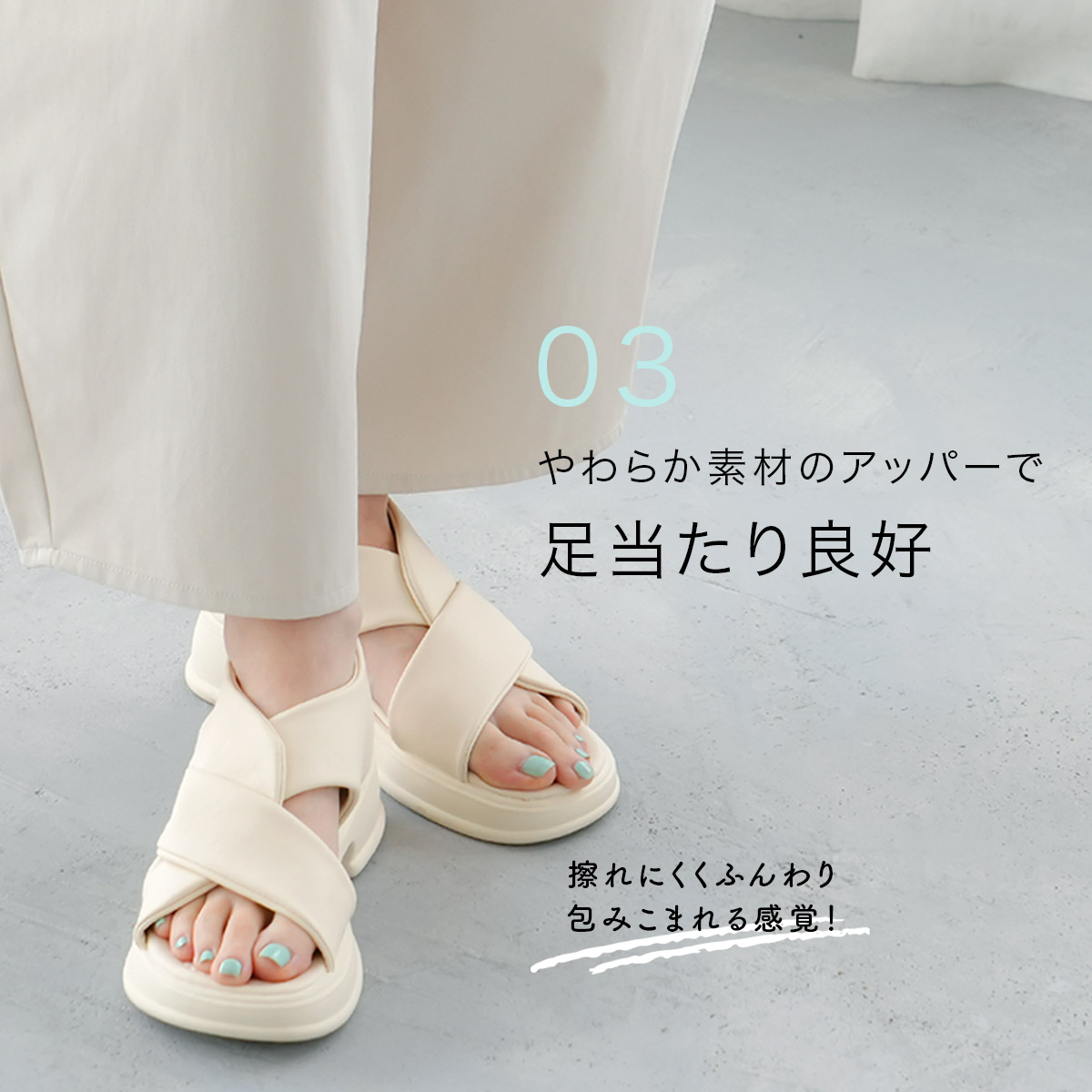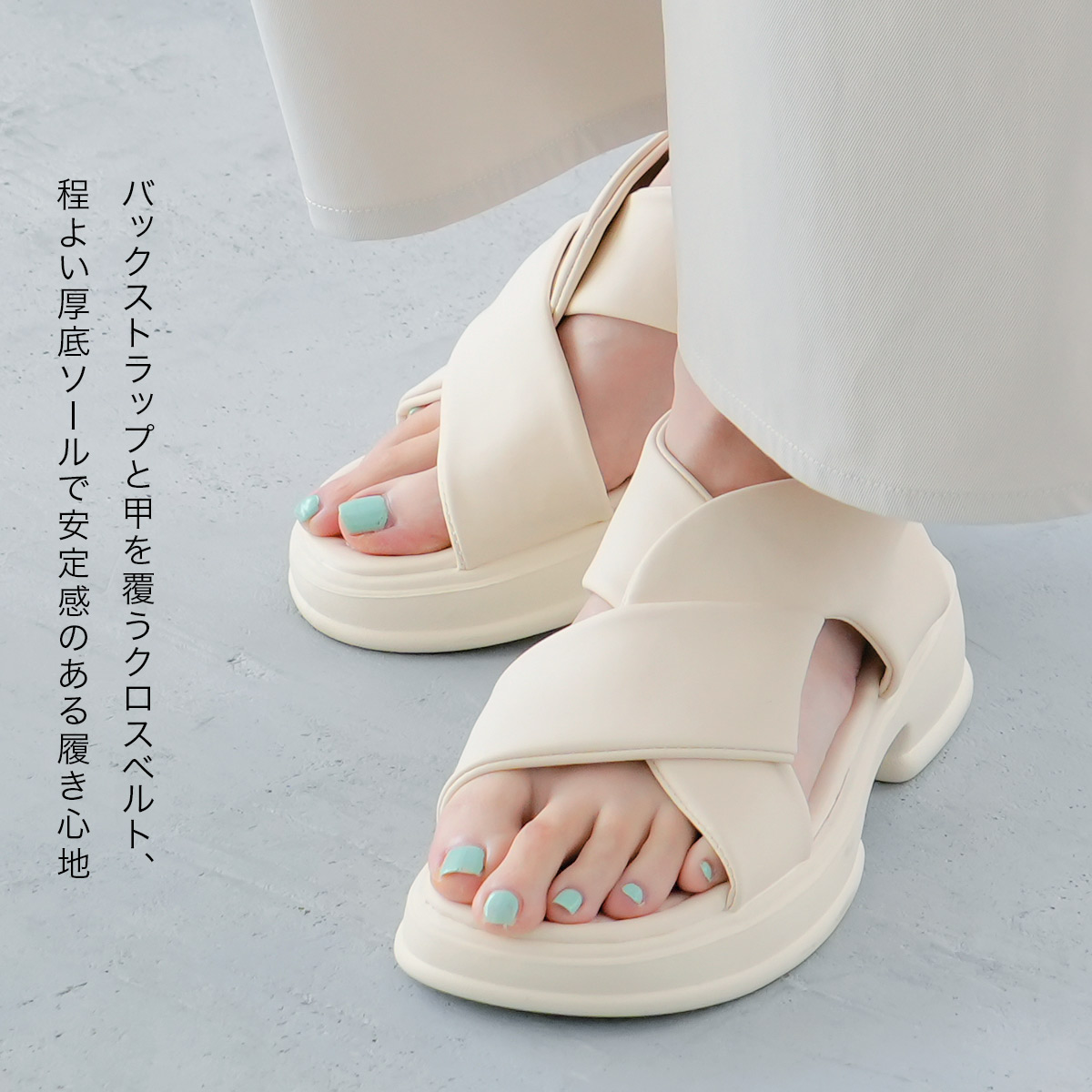サンダル レディース スクエアトゥ ゴムストラップ クロスベルトサンダル 厚底 春夏 柔らか 脱げない amiamiアミアミ