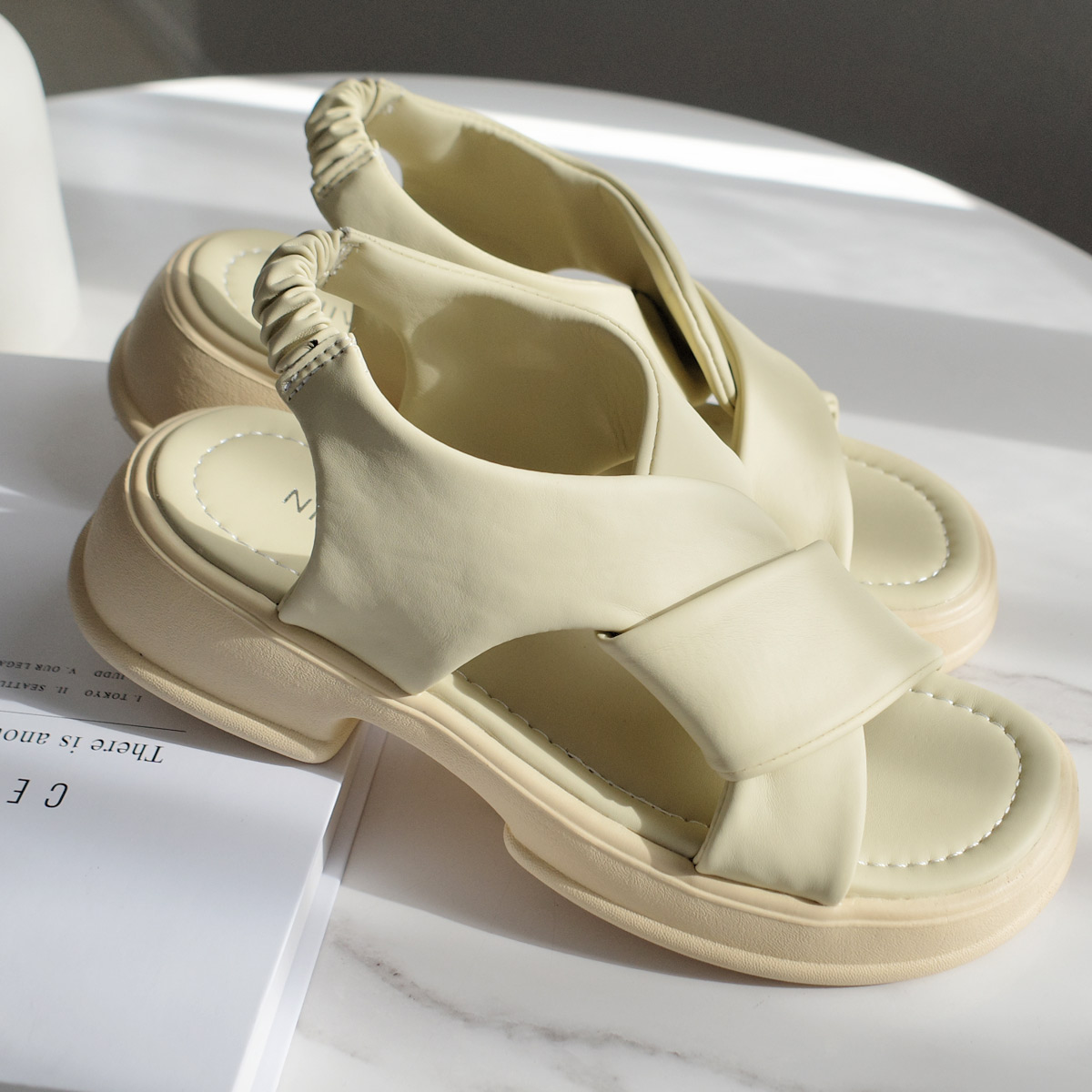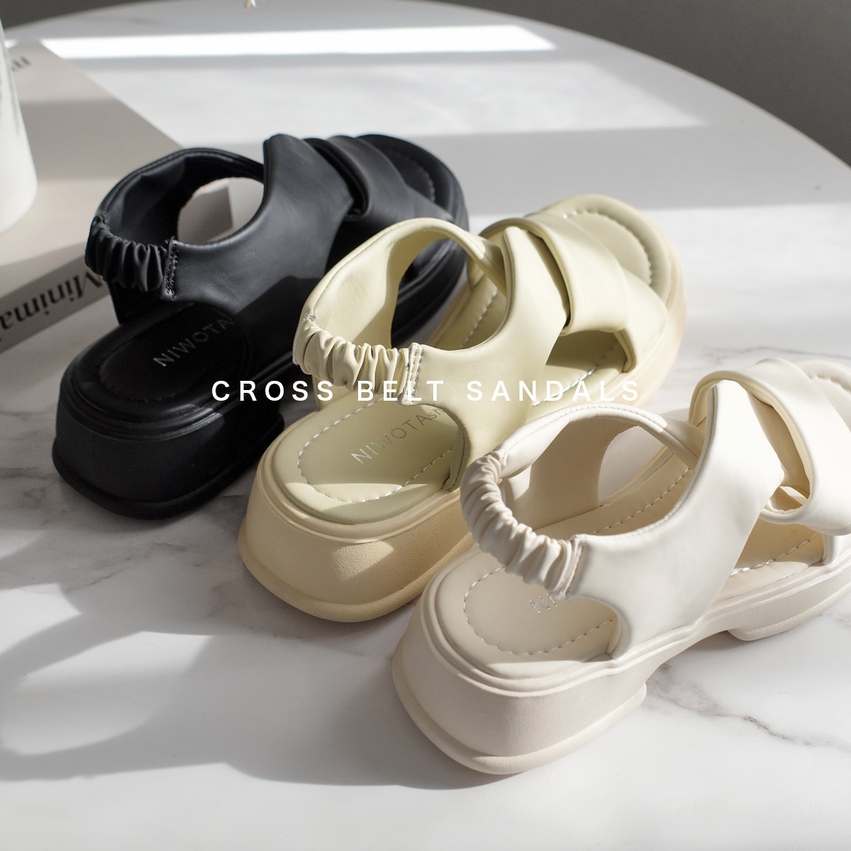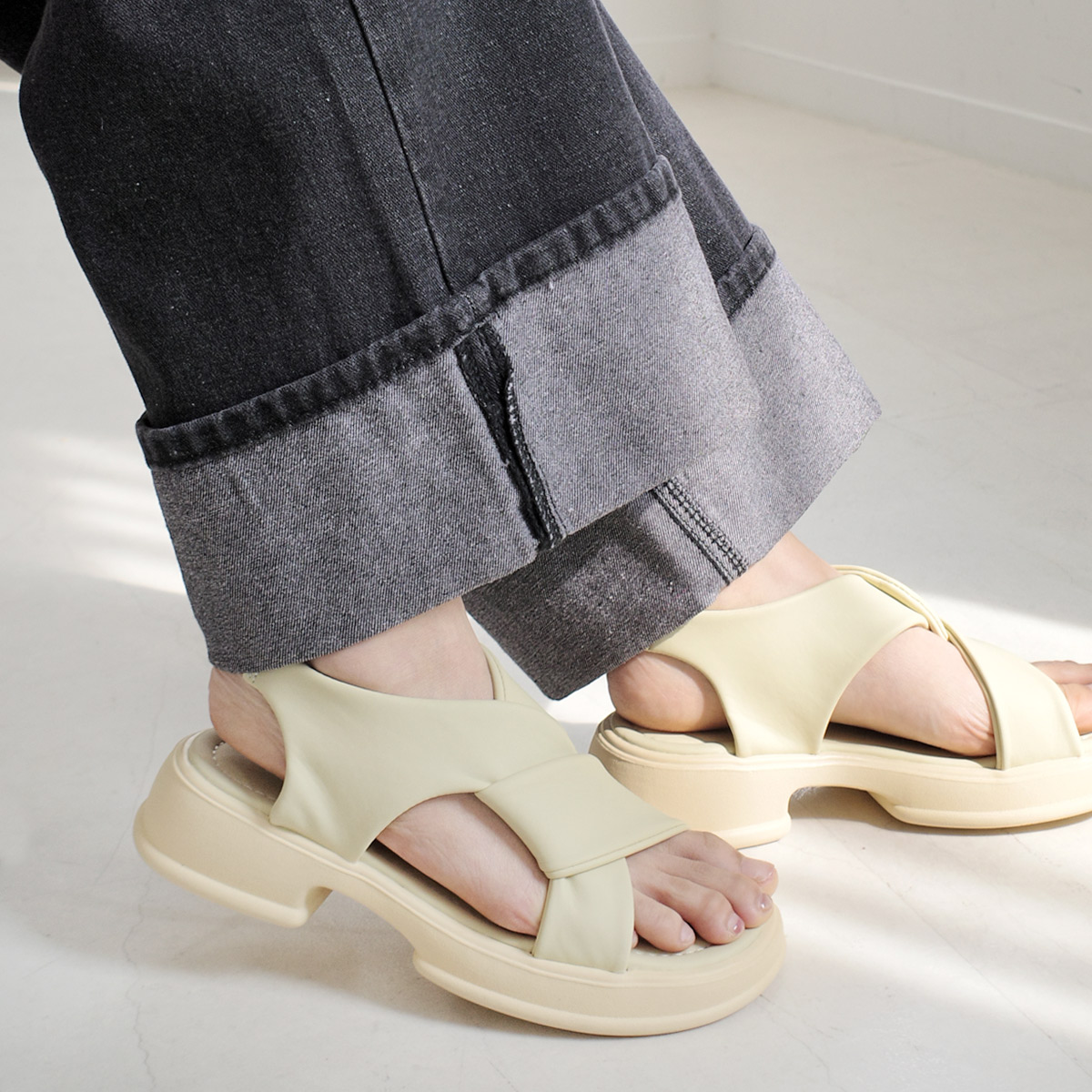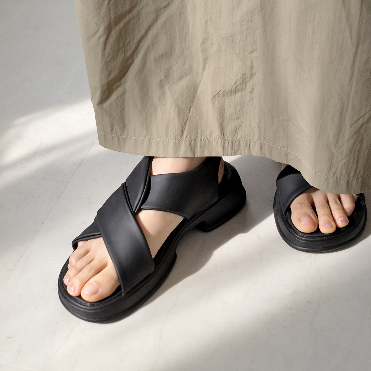 サンダル レディース スクエアトゥ ゴムストラップ クロスベルトサンダル 厚底 春夏 柔らか 脱げない amiamiアミアミ