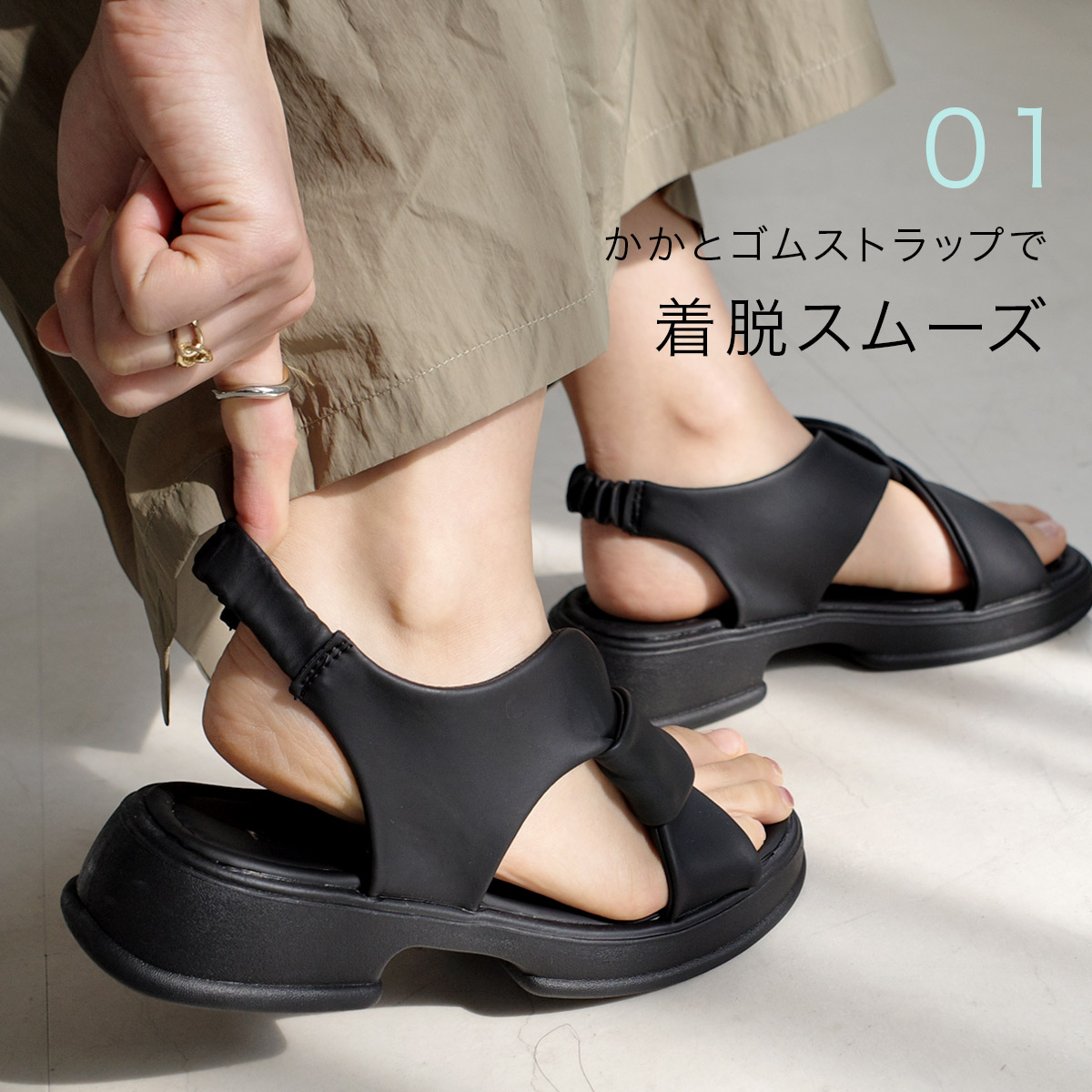 女性 厚底サンダル 歩きやすい 楽ちん 痛くない バックストラップ 快適 歩きやすい 履きやすい カジュアル 黒 白 スクエアトゥ 厚底 プラットフォーム ゴム クッション コンフォート ソフト 疲れない 美脚 トラベル 旅行 ママコーデ キレカジ モード ブラック ホワイト リゾート 通勤 通学 ショッピング シンプル きれい おしゃれ 楽22.5cm 23cm 23.5cm 24cm 24.5cm 10代 20代 30代 40代 50代アミアミ あみあみ AmiAmi フェス