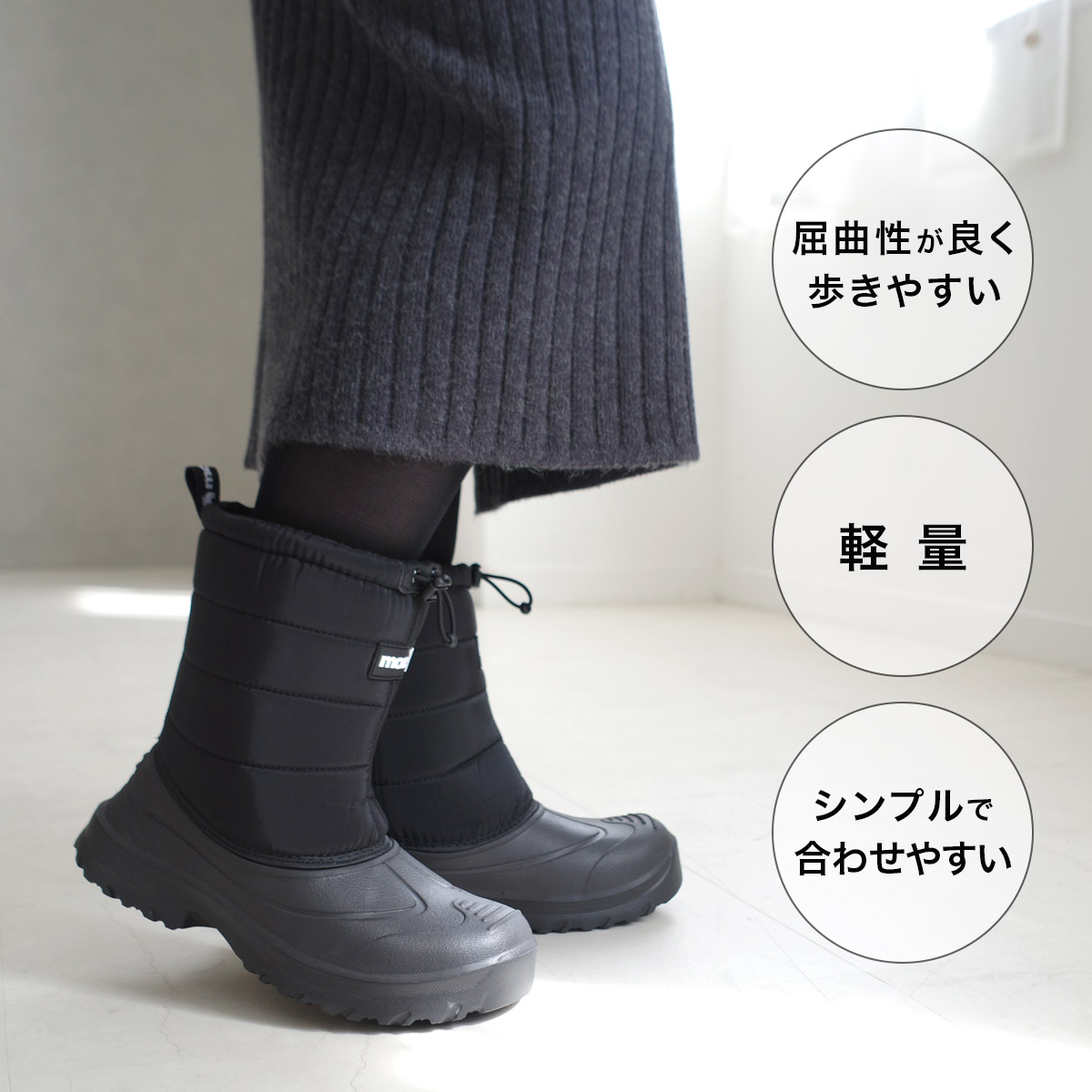 北欧生まれの人気ブランド「moz」のあったかスノーブーツ内側は全面ファーで暖かく、冷たい空気をシャットアウト!凍える寒さから足元を暖かくしてくれます。