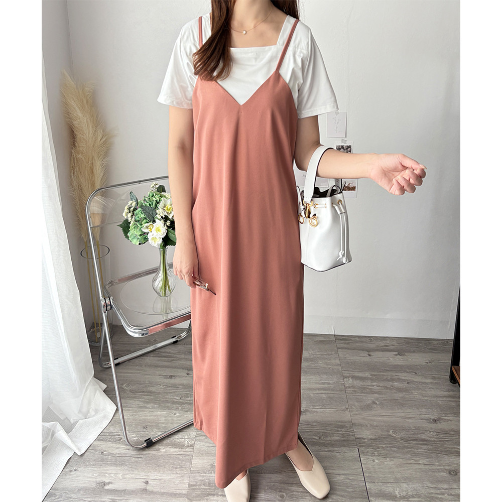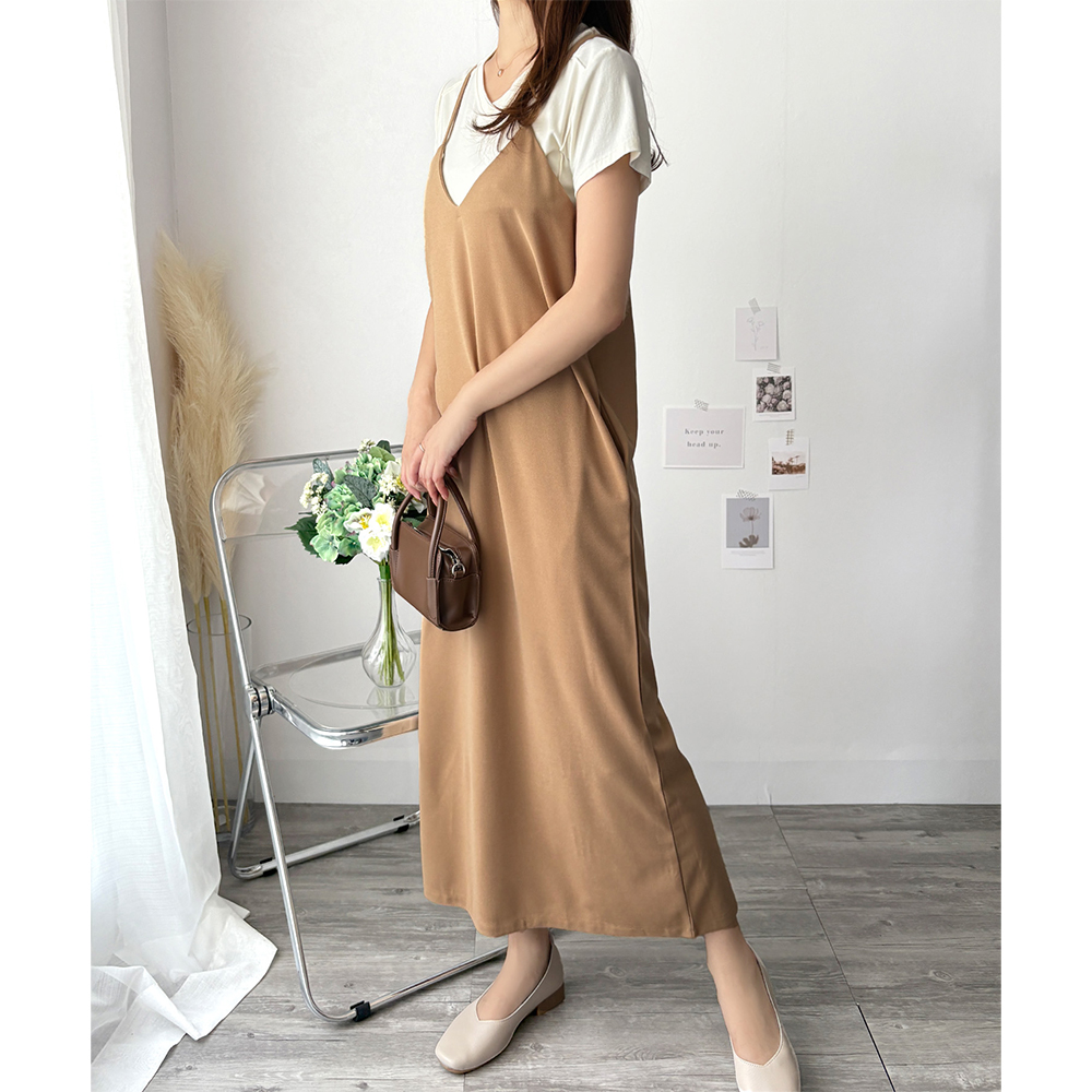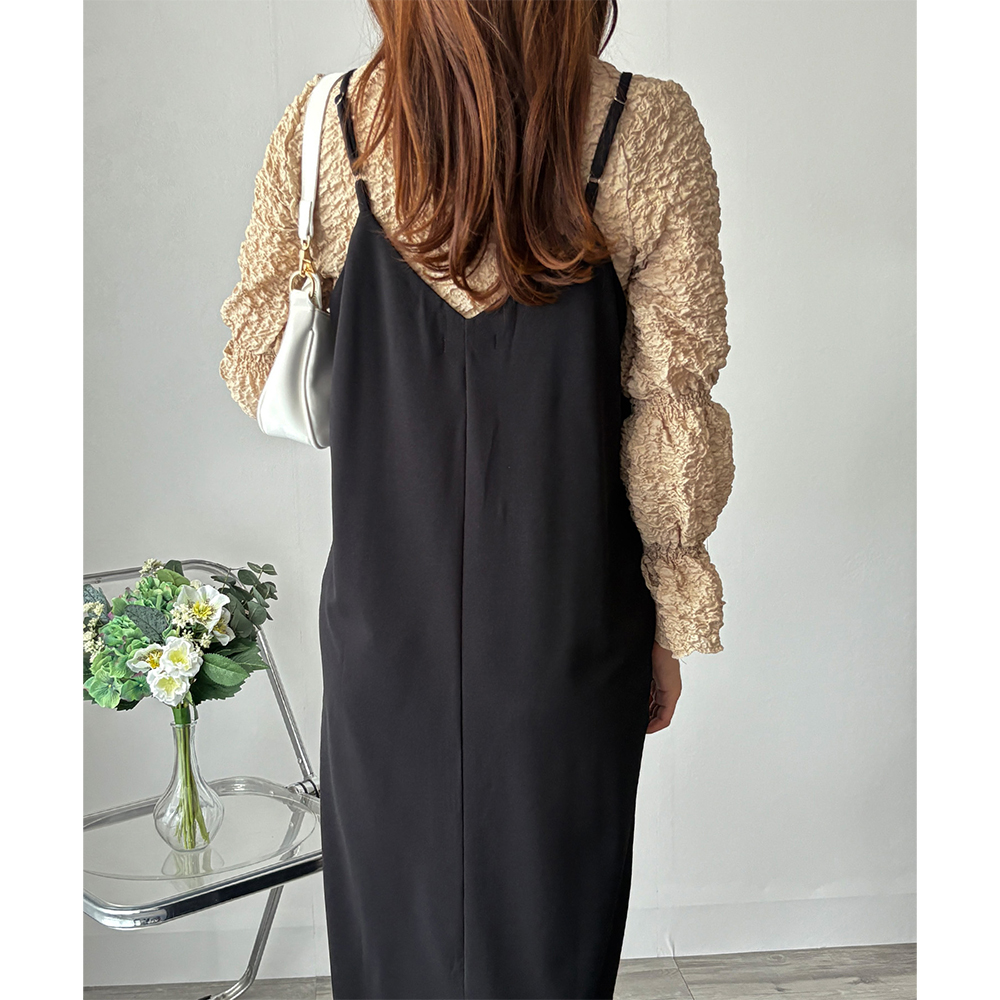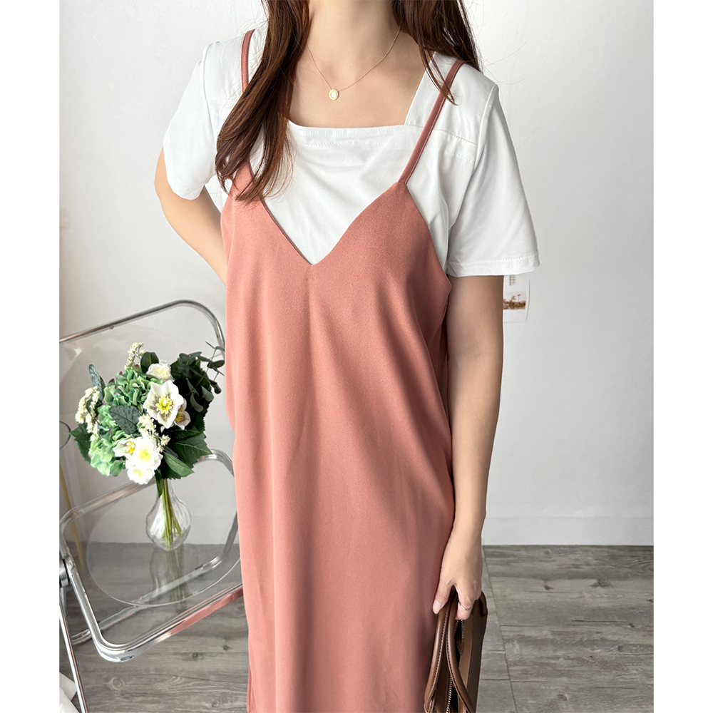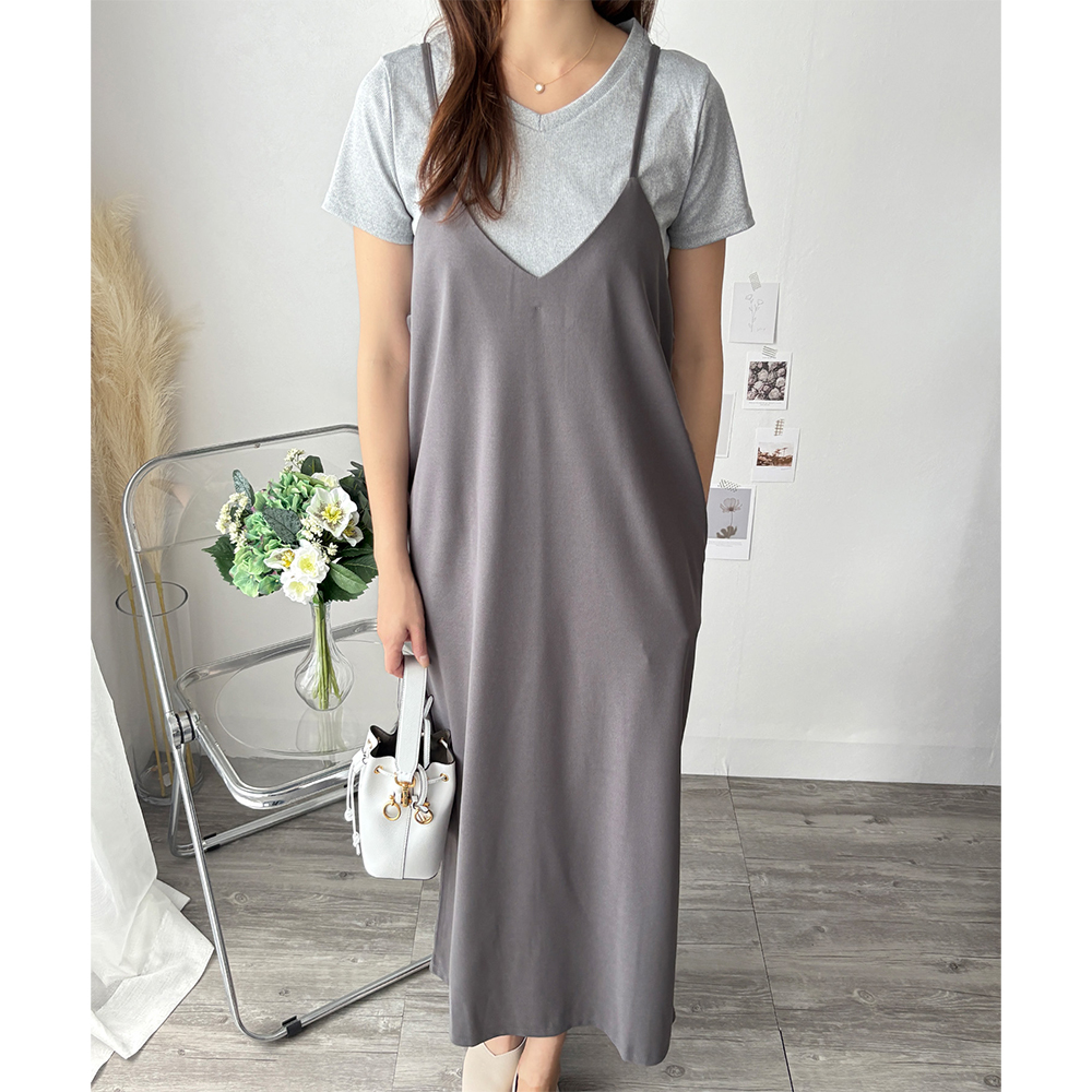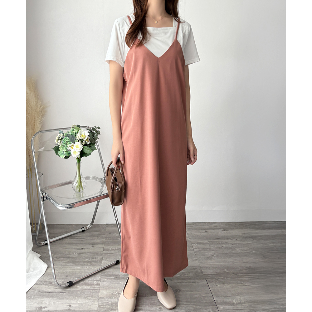 華奢なストラップが大人っぽさを引き立てるキャミソールワンピース◎