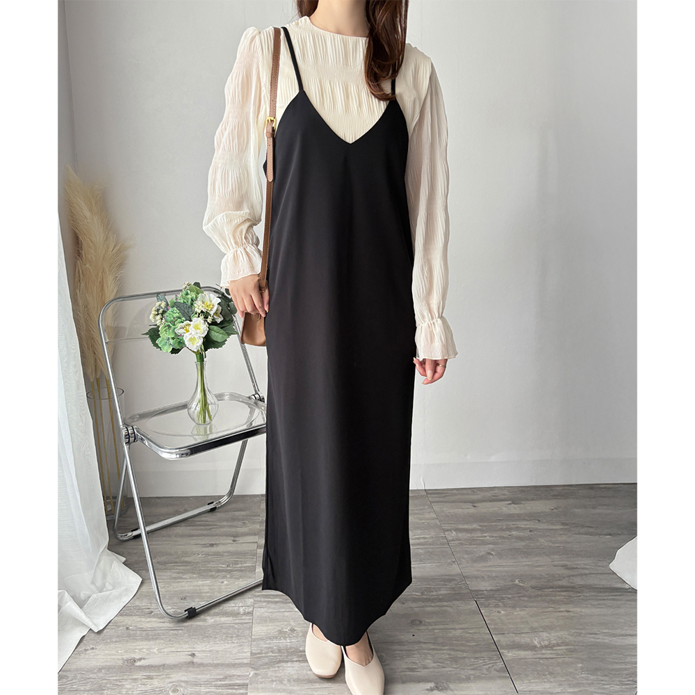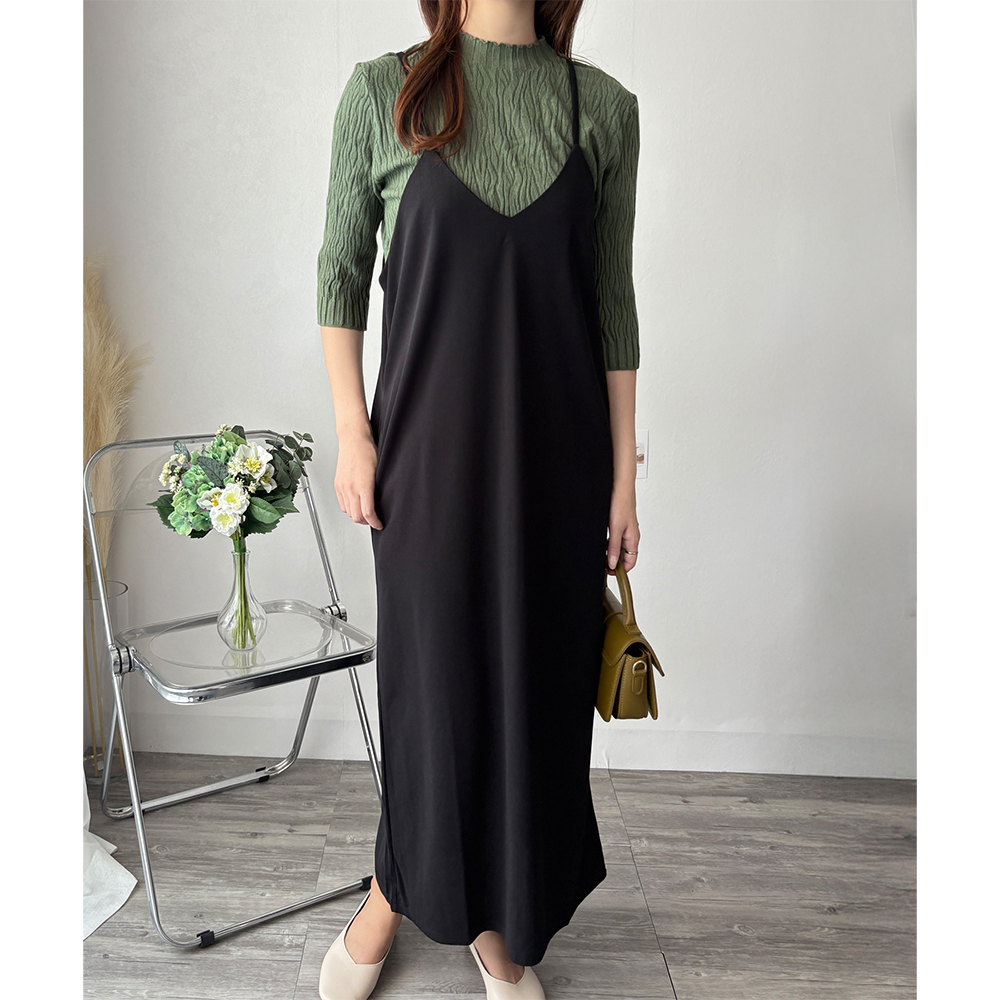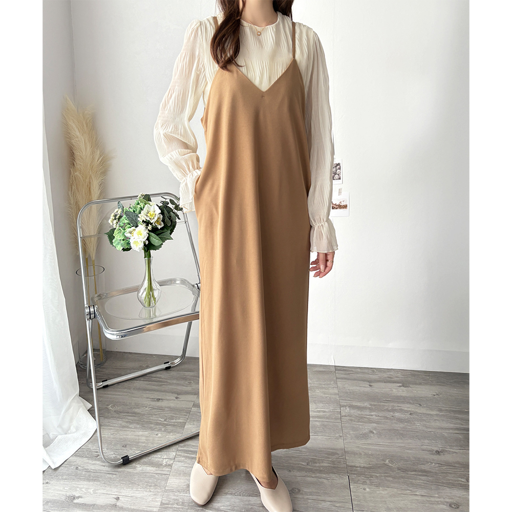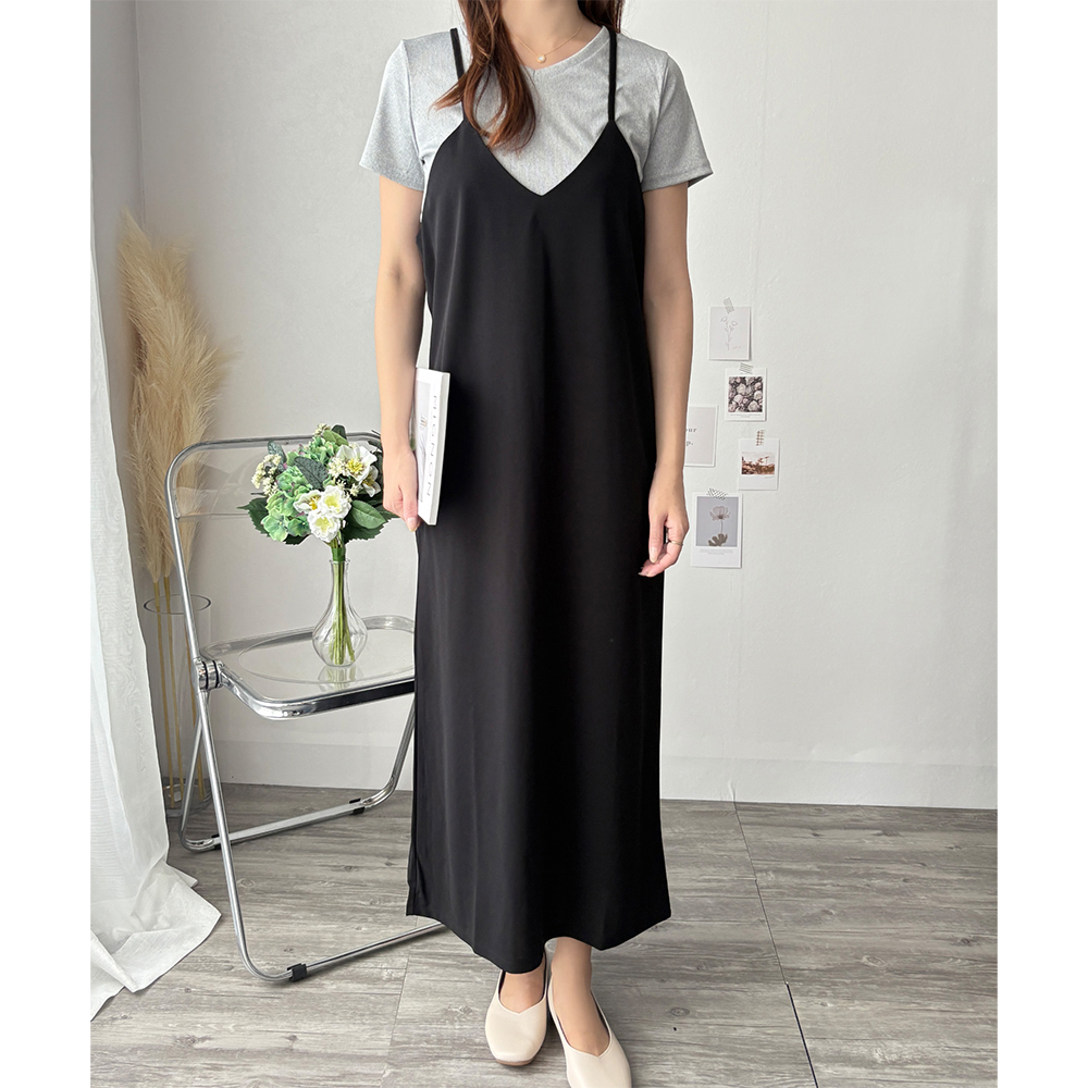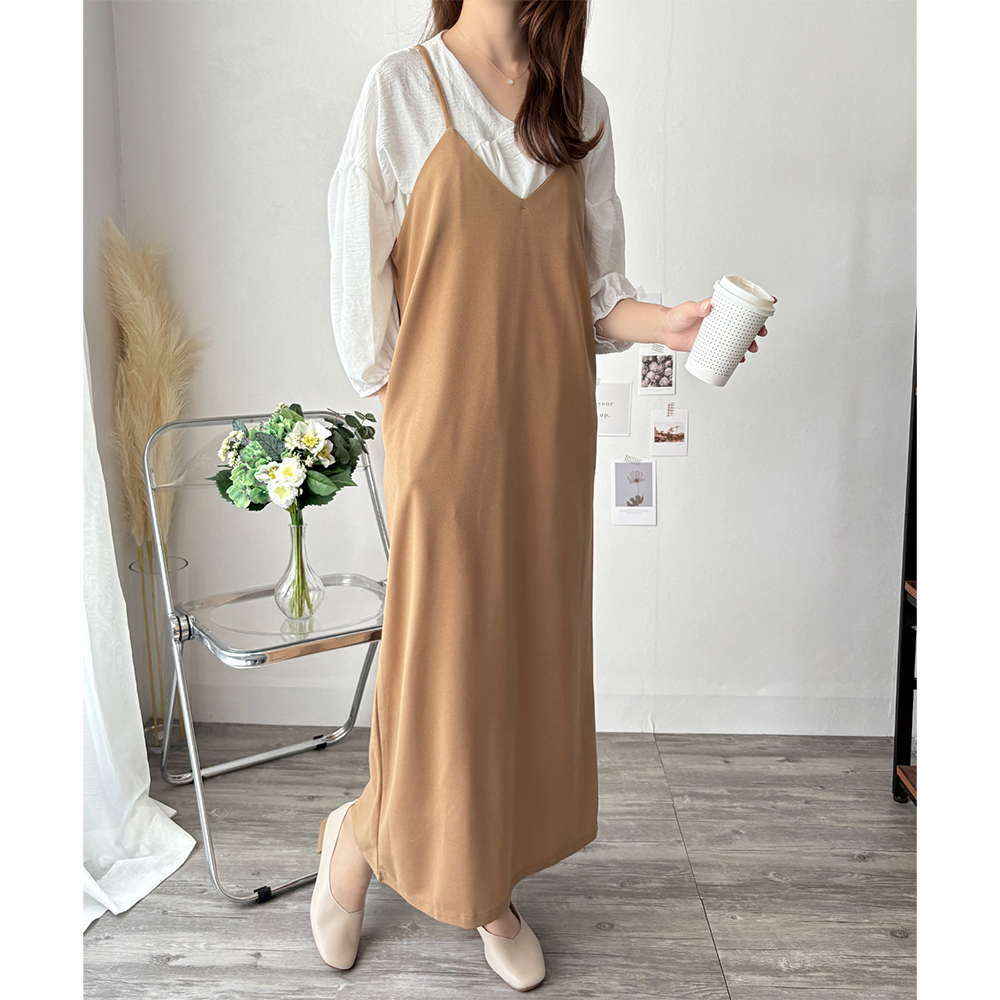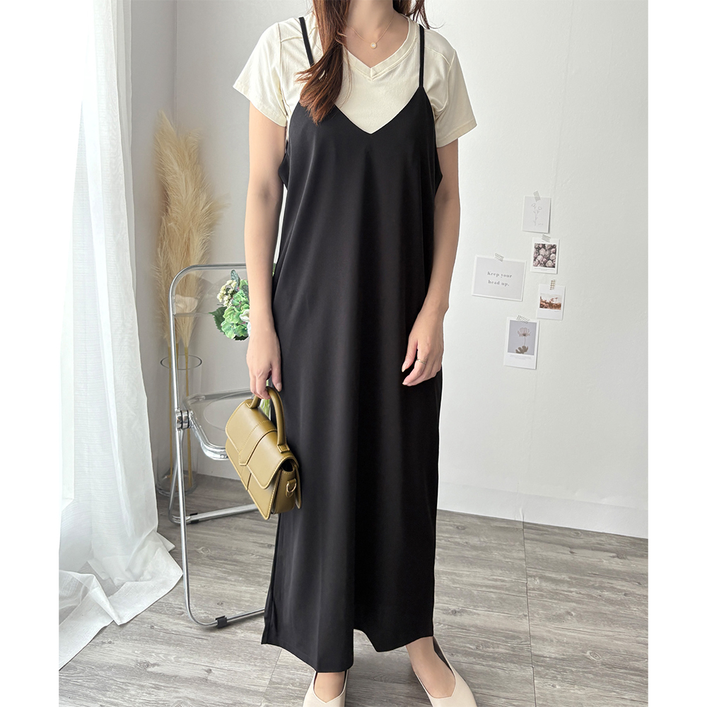 華奢なストラップが大人っぽさを引き立てるキャミソールワンピース◎