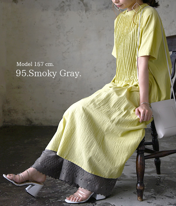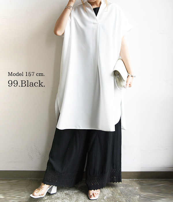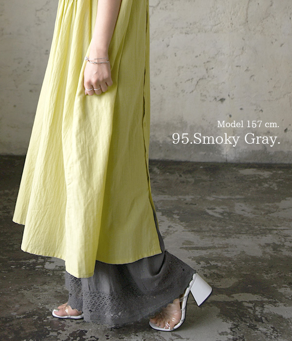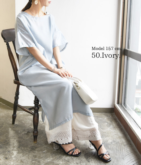 涼し気な綿麻レーヨン生地。ゆったりとしたワイドシルエットです♪
