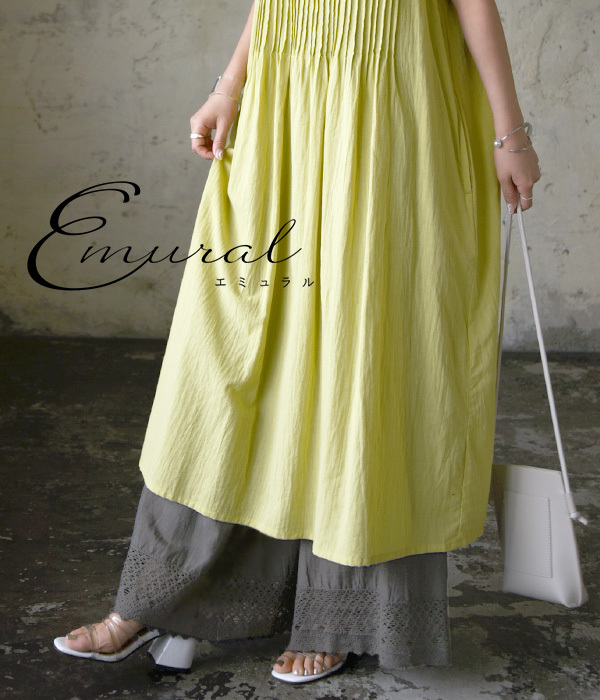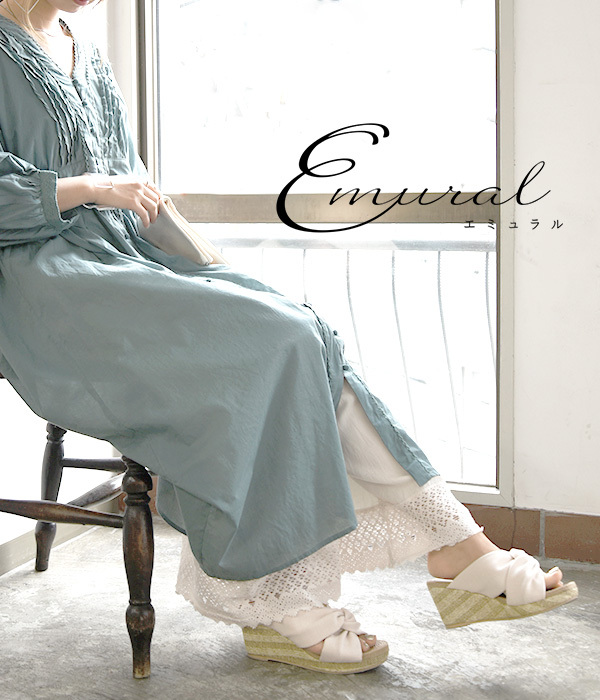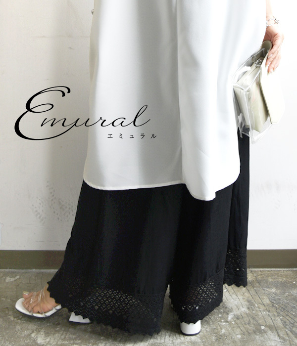 商品名:エミュラル emural 裾レース綿麻レーヨンペチパンツ