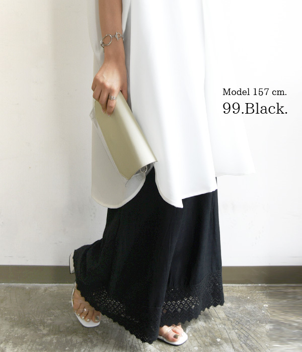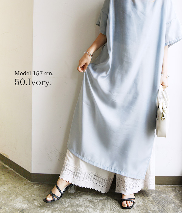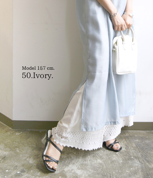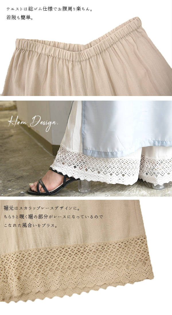 ペチコート ロング パンツ 夏 春 秋 レディース レース レーヨン コットン リネン 白 黒 静電気防止 20代 30代 40代 おしゃれ