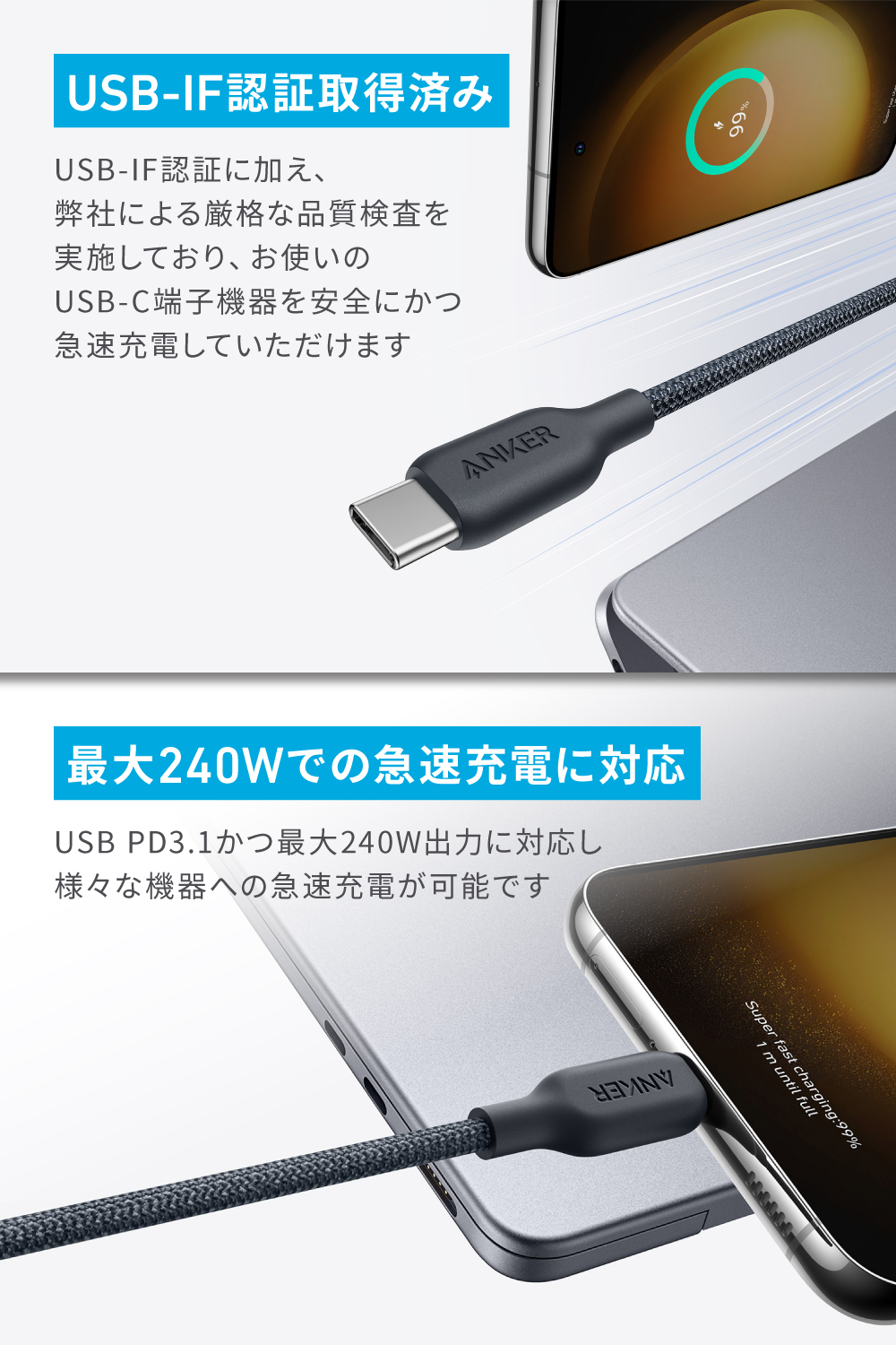 Anker USB-C & USB-C ケーブル (240W, エコフレンドリーナイロン) 1.8m