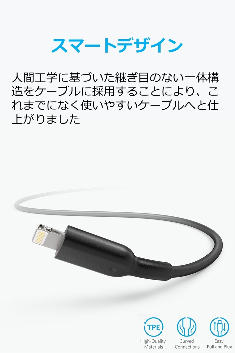 ・上質な使い心地:上質で触り心地の良い素材を使用し、さらに人間工学に基づいた製品デザインを施すことで、これまで以上の使いやすさを持つケーブルになりました。