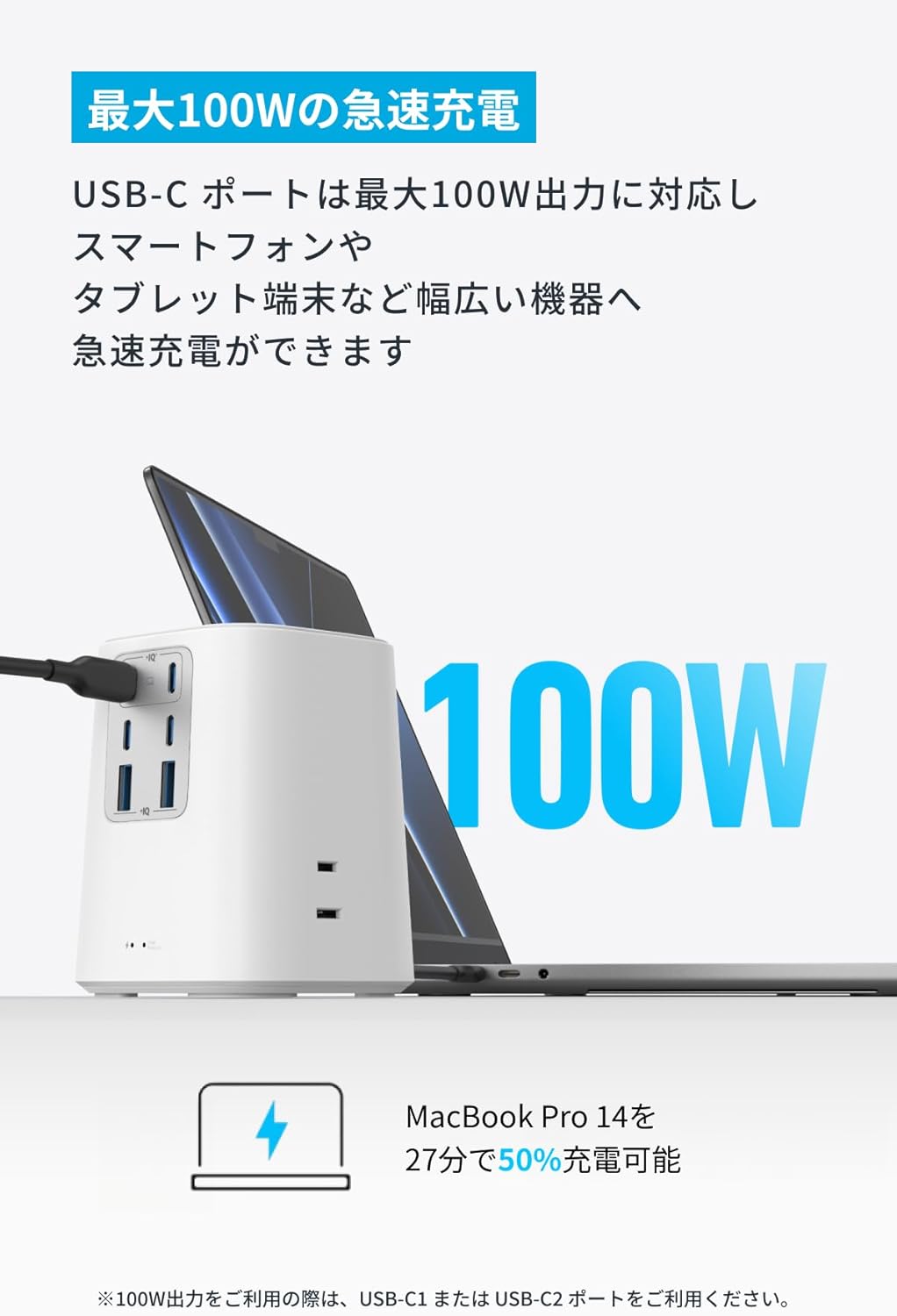 ・100W出力をご利用の場合は、100W対応のケーブル(別売り)が必要です。