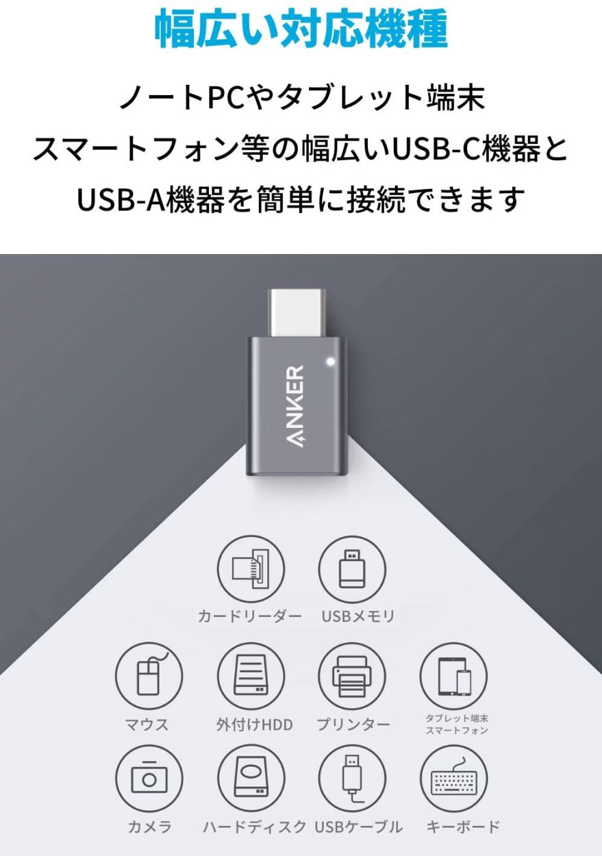 タイプC タイプA 変換 アダプタ アンカー 端子 小型 Anker PC