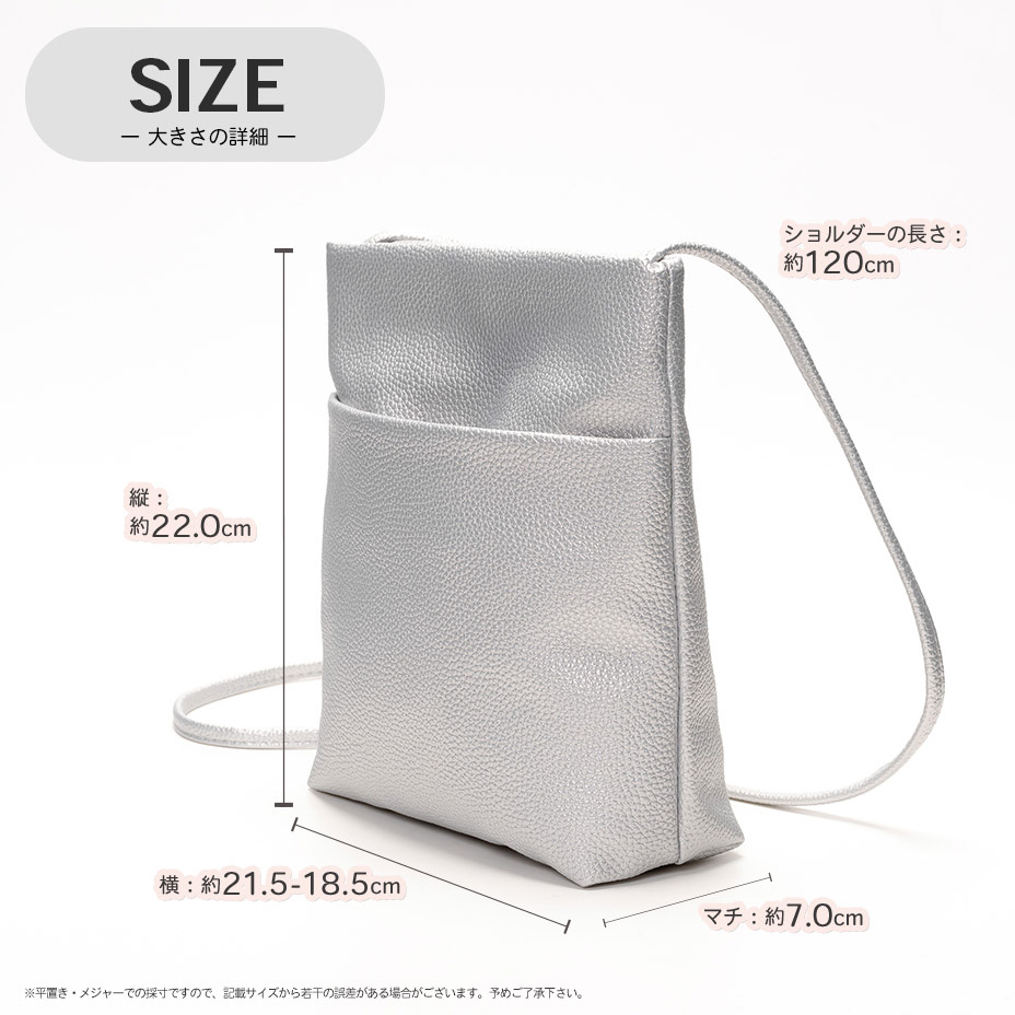 縦:約22.0cm / 横:約21.5cm-約18.5cm / マチ:約7.0cm / ショルダーの長さ:約120cm