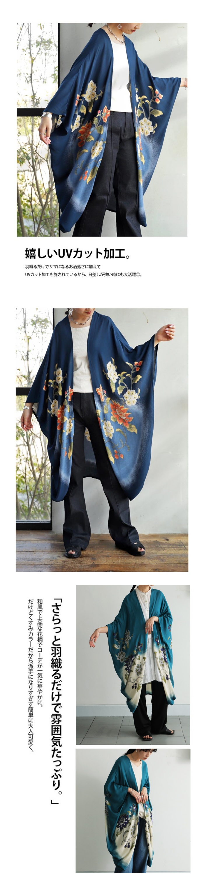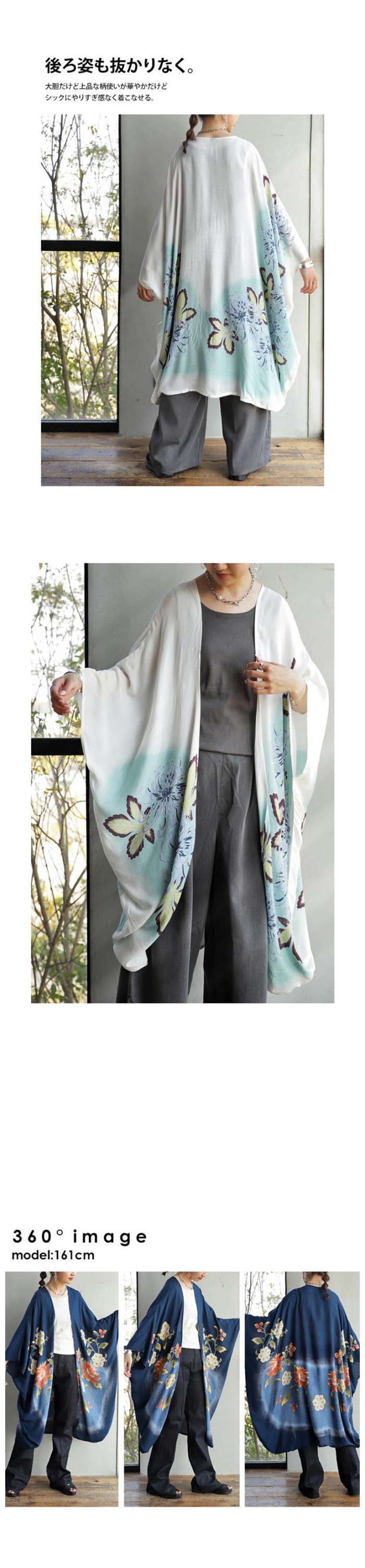 【検索ワード】カーディガン ガウン レディース アウター 七分袖 長袖 ロングガウン ロングカーデ ポンチョ トップス ワンピース UVカット加工 オーバーサイズ 変形 柄 花柄 模様 ホワイト ブラック ネイビー パープル グリーン 白 黒 紺 紫 ボリューム ラク ニュアンス レディース シンプル ヴィンテージ モダン 和モダン カジュアル デザイン シック レトロ ニュアンス antiqua select アンティカ セレクト 大人 おしゃれ 10代 20代 30代 40代 50代 60代 春 夏 秋 冬 オールシーズン お洒落 カジュアル かわいい かっこいい あんてぃか