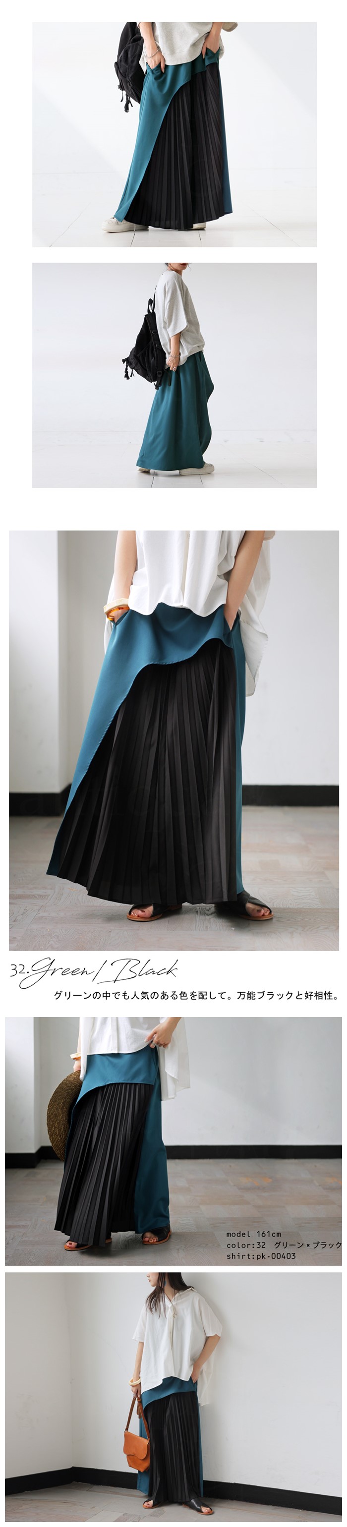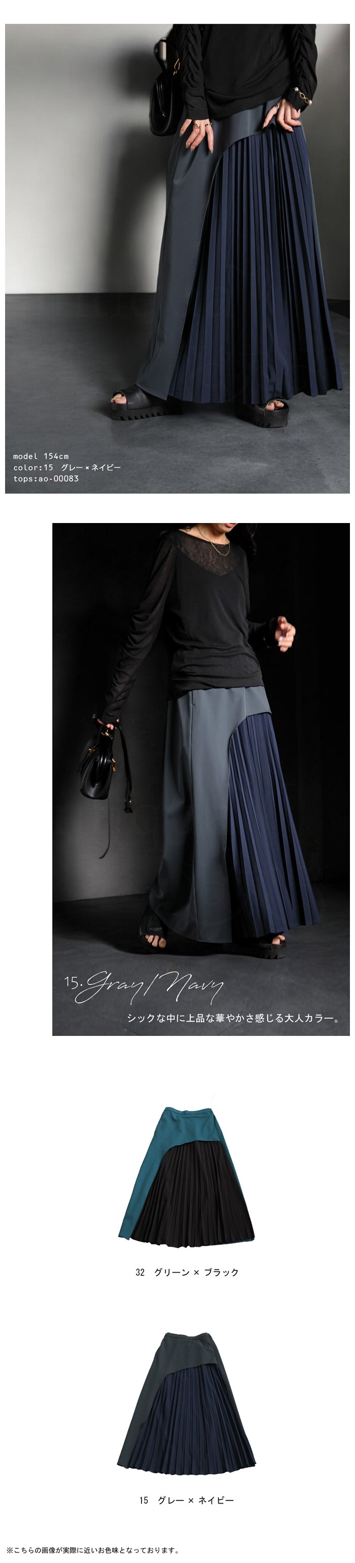 ロング 配色 カーブ カーブデザイン アシメ Aライン プリーツ