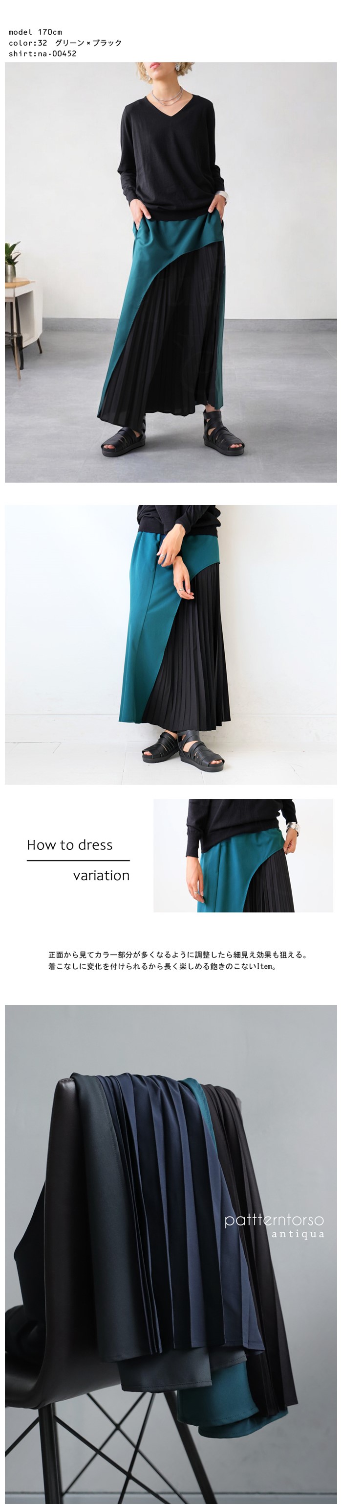 【検索ワード】アシメプリーツスカート スカート レディース ボトムス ロング ロングスカート 配色 カーブ カーブデザイン アシメ アシンメトリー Aライン プリーツ プリーツスカート ゆったり シンプル きれいめ 上品 高級感 モード ラフ 個性派 体型カバー 細見え 華奢見え 大きめ 大きいサイズ マキシ丈 デザインスカート antiqua アンティカ 大人 おしゃれ 10代 20代 30代 40代 50代 60代 春 夏 秋 冬 オールシーズン お洒落 カジュアル かわいい かっこいい あんてぃか