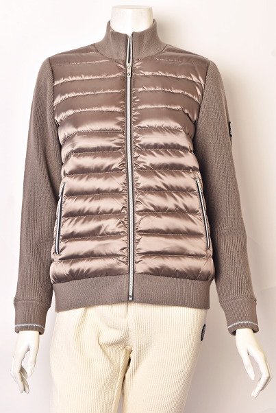 高い保温力を備えつつ軽やかな着心地のダウンとニットで切替られたジップアップブルゾン。