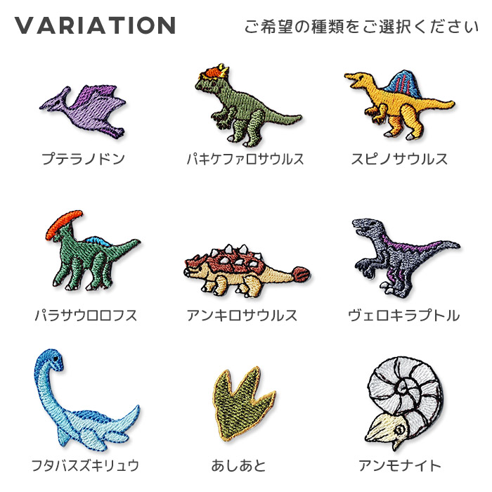 オリジナル 恐竜 プテラノドン パキケファロサウルス スピノサウルス パラサウロロフス アンキロサウルス ヴェロキラプトル フタバスズキリュウ アンモナイト 総刺繍 動物 かわいい マスク アップリケ アイロン接着