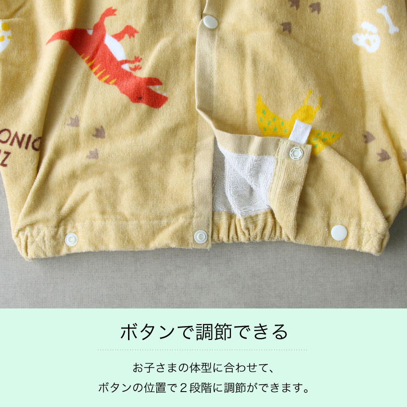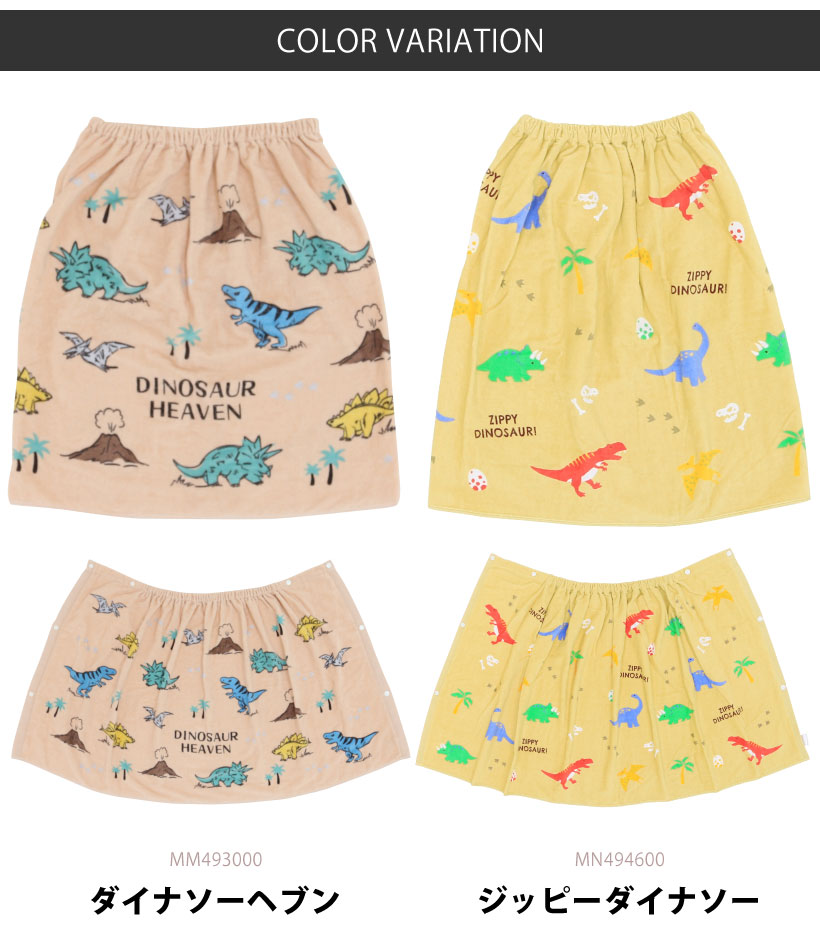 お着換えが楽しくなる、かわいいマリン柄と恐竜柄の巻きタオル。ゴムとスナップボタンが付いているのでスカートやポンチョのようにして使用でき、ジムやお風呂上りや水泳の後などのお着替えにさっと巻けて便利です♪ 学校のプールやレジャーでの水遊びに大活躍。