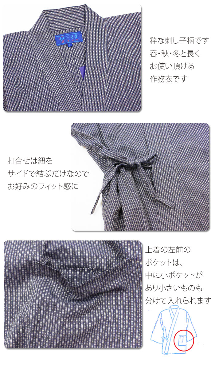 作務衣 刺し子 風 刺子 メンズ 男性用 おすすめ 実用的 wabisabi 紳士 さしこ さむえ 甚平 浴衣 作業着 取寄商品