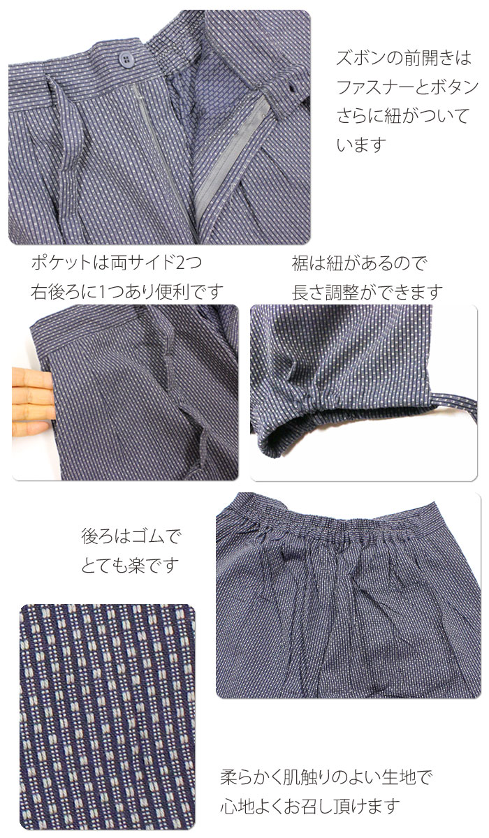 刺し子風柄のおしゃれな作務衣 サイズはM〜LL寸です